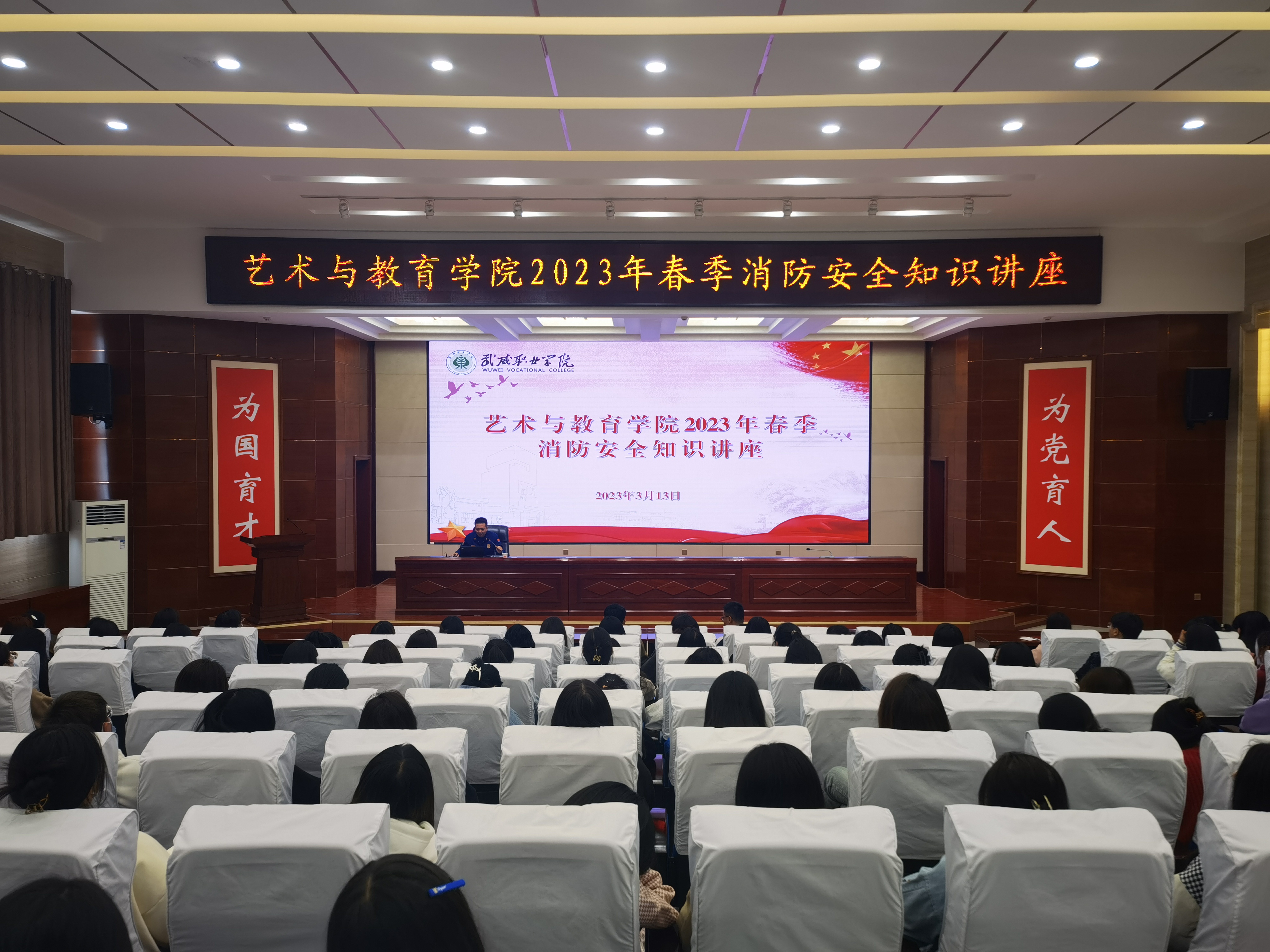 為進一步加強我院師生消防安全意識,提升自我應變和防護能力。近日,藝術(shù)與教育學院在大學生發(fā)展中心菁英廳開展了消防安全知識講座。講座由武威市消防救援支隊涼都特勤站站長武子奇主講,200多名師生參加講座。