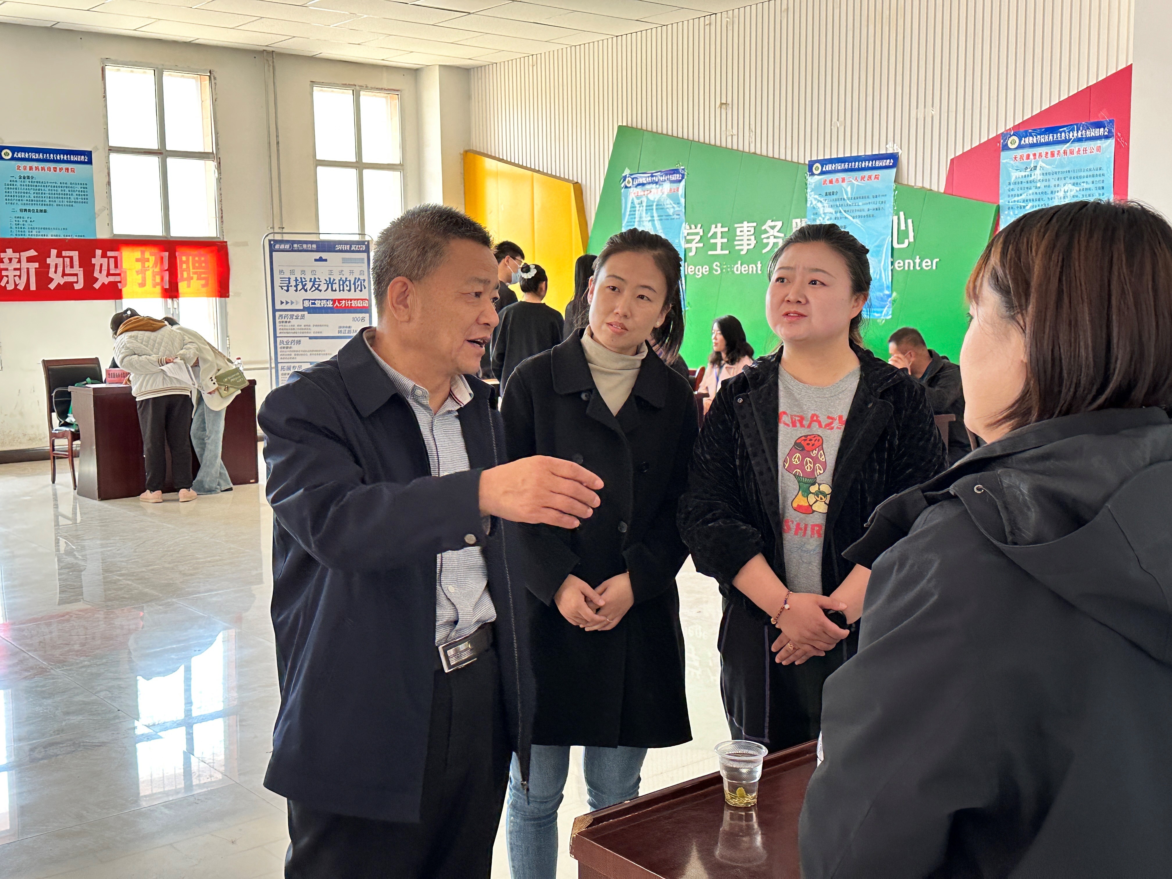 為深入學(xué)習(xí)貫徹黨的二十大精神,落實黨中央、國務(wù)院、省委、省政府對高校畢業(yè)生就業(yè)創(chuàng)業(yè)工作的決策部署,把促進(jìn)高校畢業(yè)生就業(yè)工作擺在更加突出的位置,結(jié)合“三抓三促”行動推進(jìn)2023屆畢業(yè)生充分就業(yè),滿足畢業(yè)生多層次、全方位、個性化化的就業(yè)需求。4月14日,學(xué)院在大學(xué)生活動中心舉辦了“搭建就業(yè)平臺 共建美好未來-武威職業(yè)學(xué)院2023屆醫(yī)藥衛(wèi)生類專業(yè)畢業(yè)生校園專場招聘會”。作為今年首次在校園區(qū)域開展的專場招聘會,受到了學(xué)院各級領(lǐng)導(dǎo)的高度重視。學(xué)院領(lǐng)導(dǎo)、2020級班主任、畢業(yè)生參加專場招聘會。