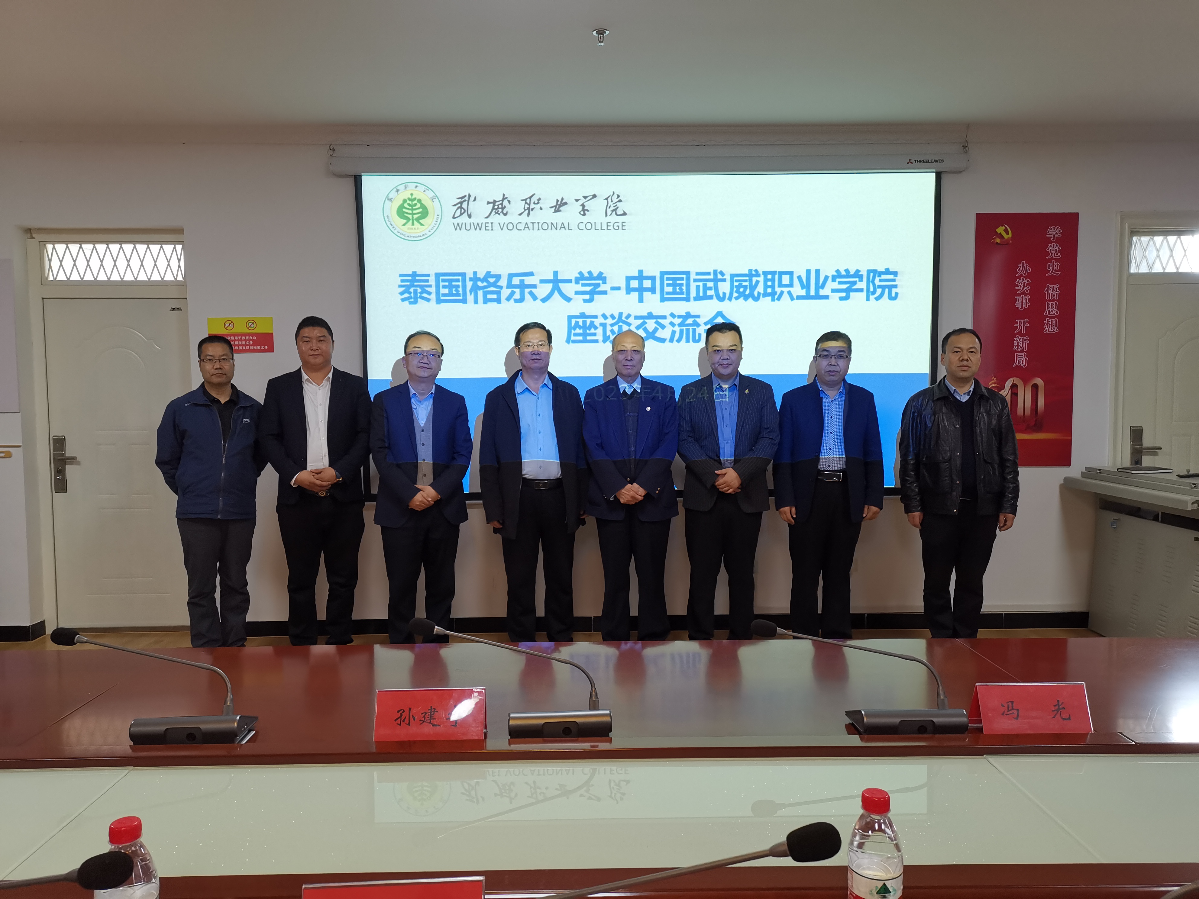 座談會上,張開禮代表學(xué)校對泰國格樂大學(xué)校長助理一行到訪學(xué)校表示歡迎,并向來訪客人簡要介紹了武威市情、學(xué)校歷史變遷、建設(shè)發(fā)展、國際合作與交流開展情況等。來訪客人對學(xué)校近年來的巨大發(fā)展表示贊賞,對學(xué)校建設(shè)發(fā)展取得的巨大成就表示欽佩,對學(xué)校國際交流與合作開展工作表示肯定。賓主雙方還就校際交流、語言培訓(xùn)、師生互訪、赴泰國格樂大學(xué)“專升本”“專升碩”留學(xué)項目等共同關(guān)心的問題進(jìn)行了坦誠交流。