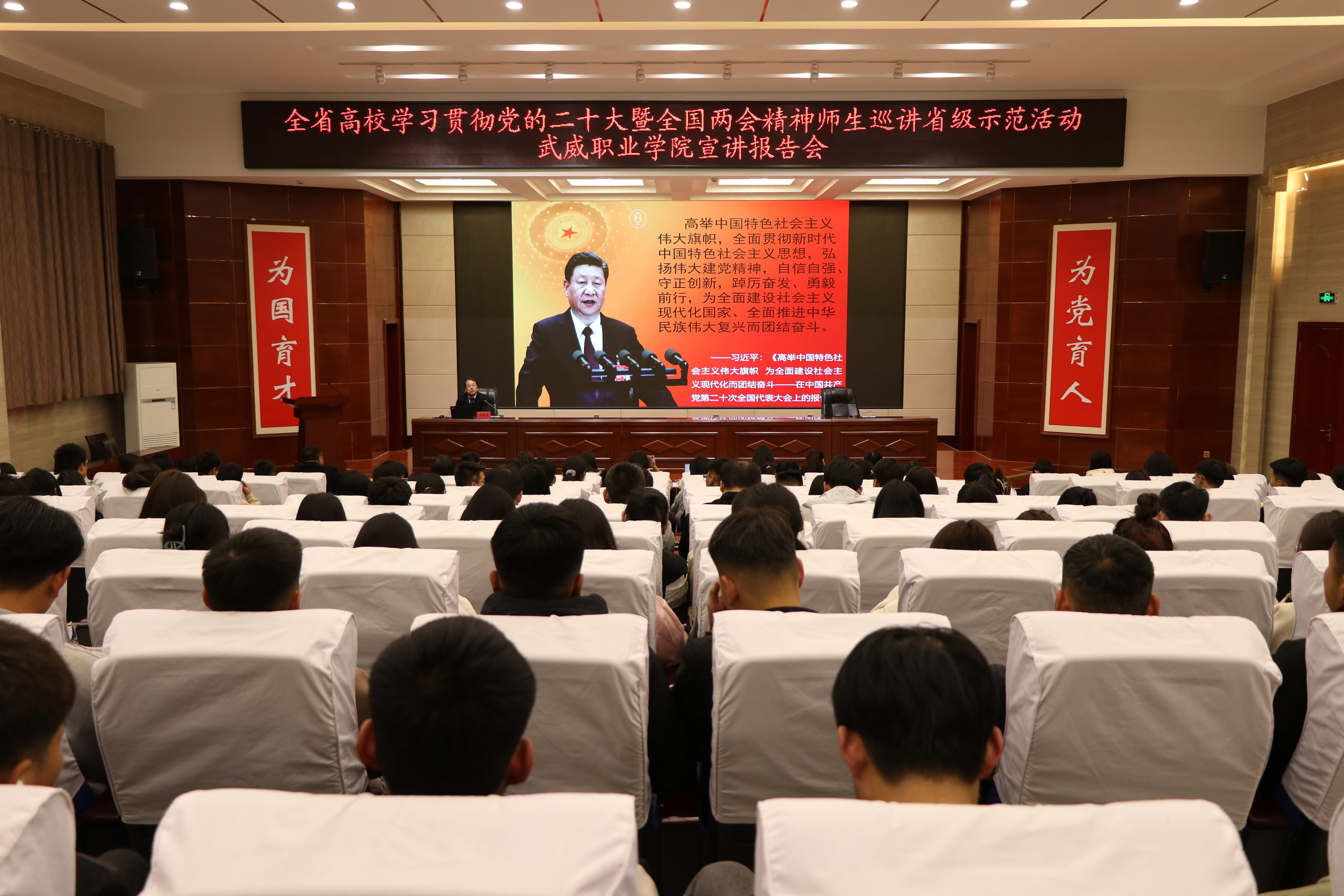 廣大師生紛紛表示,巡講報(bào)告主題鮮明、內(nèi)容豐富、生動(dòng)精彩,讓人耳目一新、受益匪淺,大家要把學(xué)習(xí)貫徹黨的二十大精神,同學(xué)習(xí)貫徹習(xí)近平新時(shí)代中國特色社會(huì)主義思想主題教育結(jié)合起來,同貫徹落實(shí)黨中央、省委重大決策部署結(jié)合起來,同開展“三抓三促”行動(dòng)結(jié)合起來,為奮力譜寫學(xué)校高質(zhì)量發(fā)展新篇章貢獻(xiàn)力量。