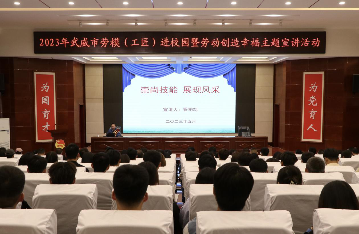 為貫徹落實(shí)全國職業(yè)教育大會精神,進(jìn)一步在師生中大力弘揚(yáng)勞模精神、勞動精神和工匠精神,不斷推動我校“提質(zhì)培優(yōu)”“技能甘肅”和“雙高計劃”項目建設(shè)工作。5月15日上午,學(xué)校在學(xué)生發(fā)展中心菁英廳舉辦勞模(工匠)進(jìn)校園暨勞動創(chuàng)造幸福主題宣講活動,邀請“甘肅省勞動模范”“甘肅省青年崗位能手”獲得者、甘肅電投武威熱電公司電氣檢修班班長、安全監(jiān)察主管管柏凱作題為《崇尚技能 展現(xiàn)風(fēng)采》的專題報告。報告會由學(xué)校工會主席金玉龍主持,各相關(guān)部門負(fù)責(zé)人、省級“雙高計劃”高水平專業(yè)群師生代表共220人參加報告會。