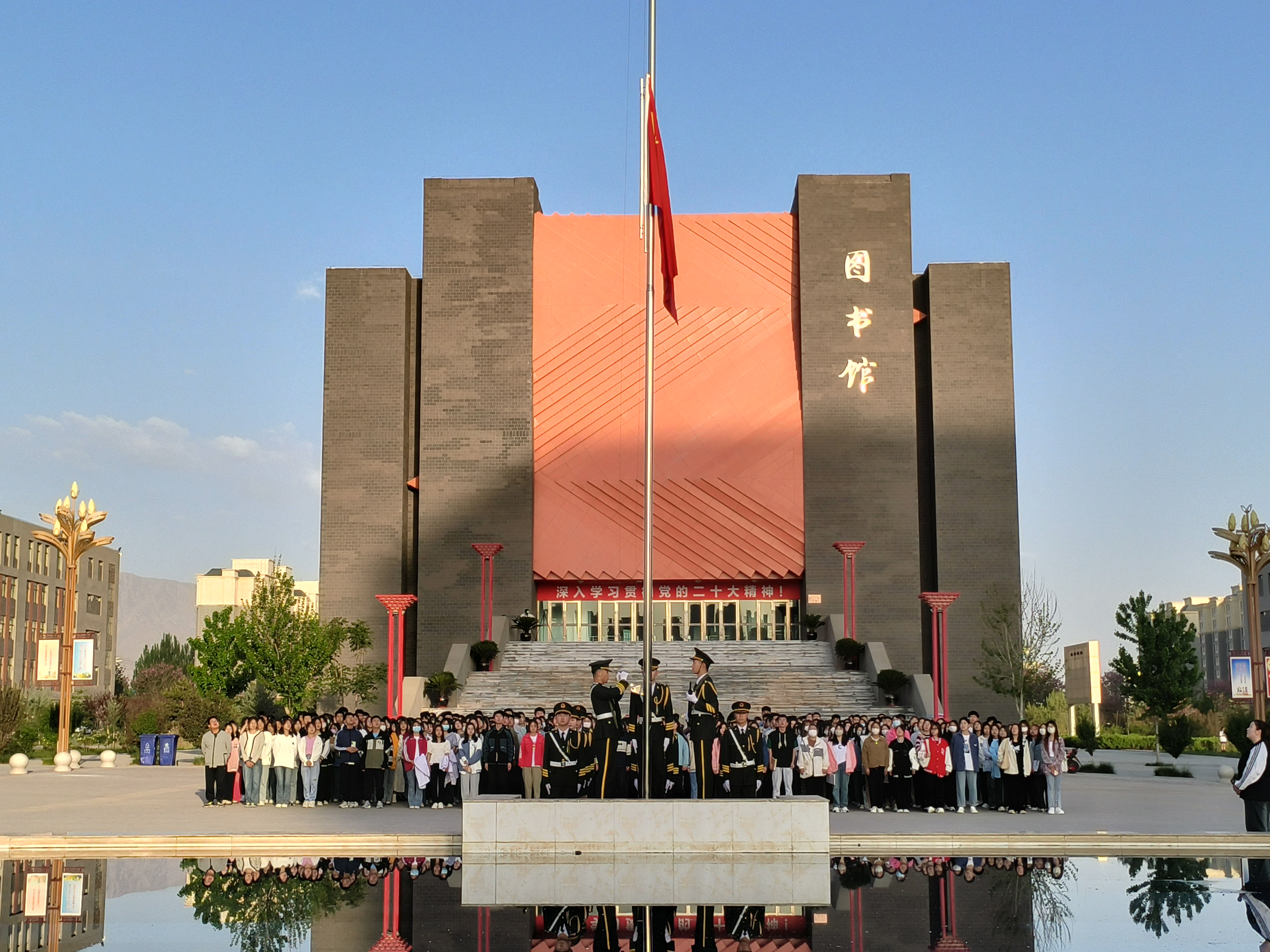 ? ? ? ?五月如歌,萬(wàn)物齊詠,沐浴著夏日清晨的暖陽(yáng),2023年5月15日,藥學(xué)院舉行第十二周的升旗儀式。本次升旗儀式在圖書(shū)館前國(guó)旗下進(jìn)行,由學(xué)生會(huì)主席尚寶萍同學(xué)主持。