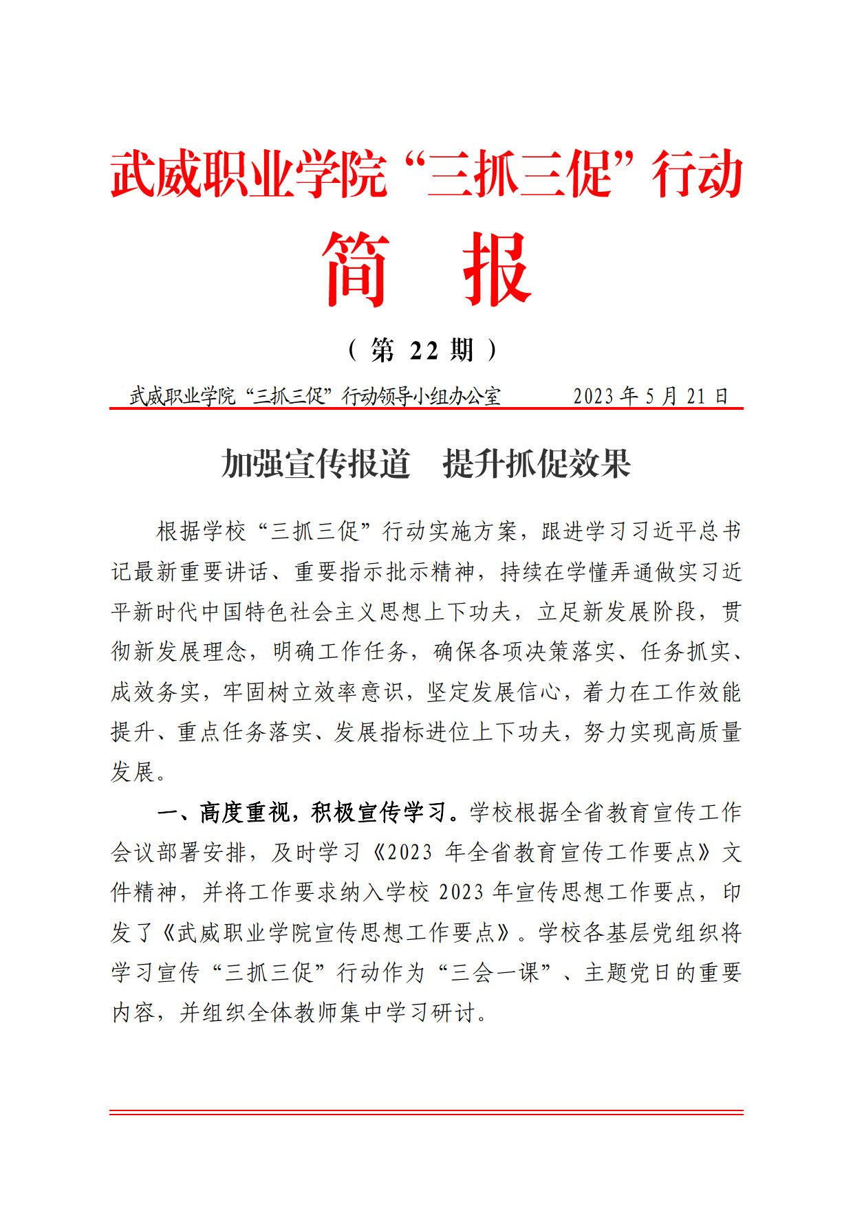 簡報第22期:加強(qiáng)宣傳報道 提升抓促效果