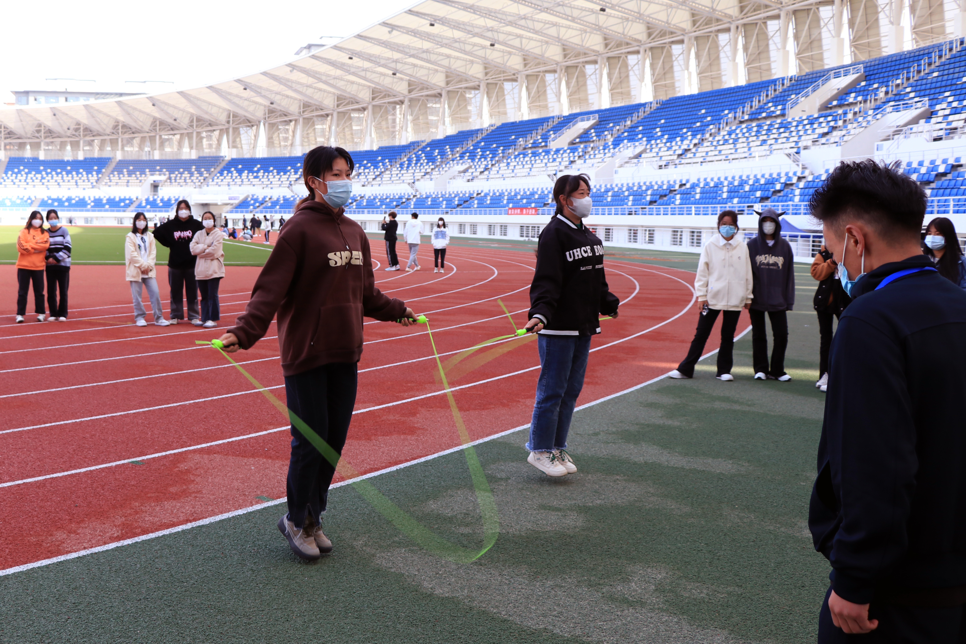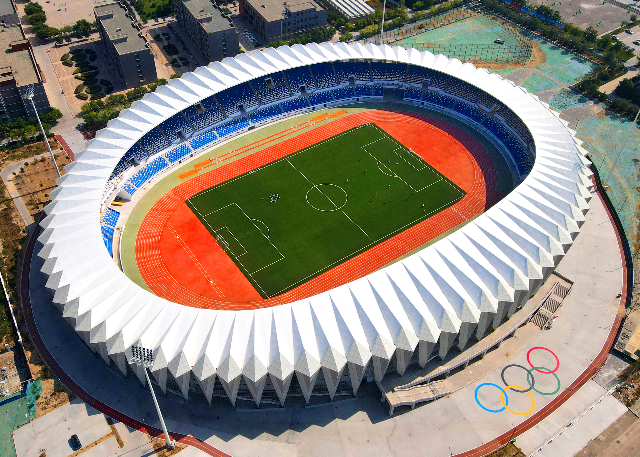武威職業(yè)學院體育場占地面積34401平方米,建有8條400米標準環(huán)形塑膠跑道及人工草坪足球場、跳高、跳遠場、百米直跑道,障礙水池、室內(nèi)跑廊等設(shè)施。是廣大市民、學生健身的好去處,滿足學校體育教育教學需求,同時兼具緊急避難場所功能,可承辦省、市級高水平賽事和各種體育活動。