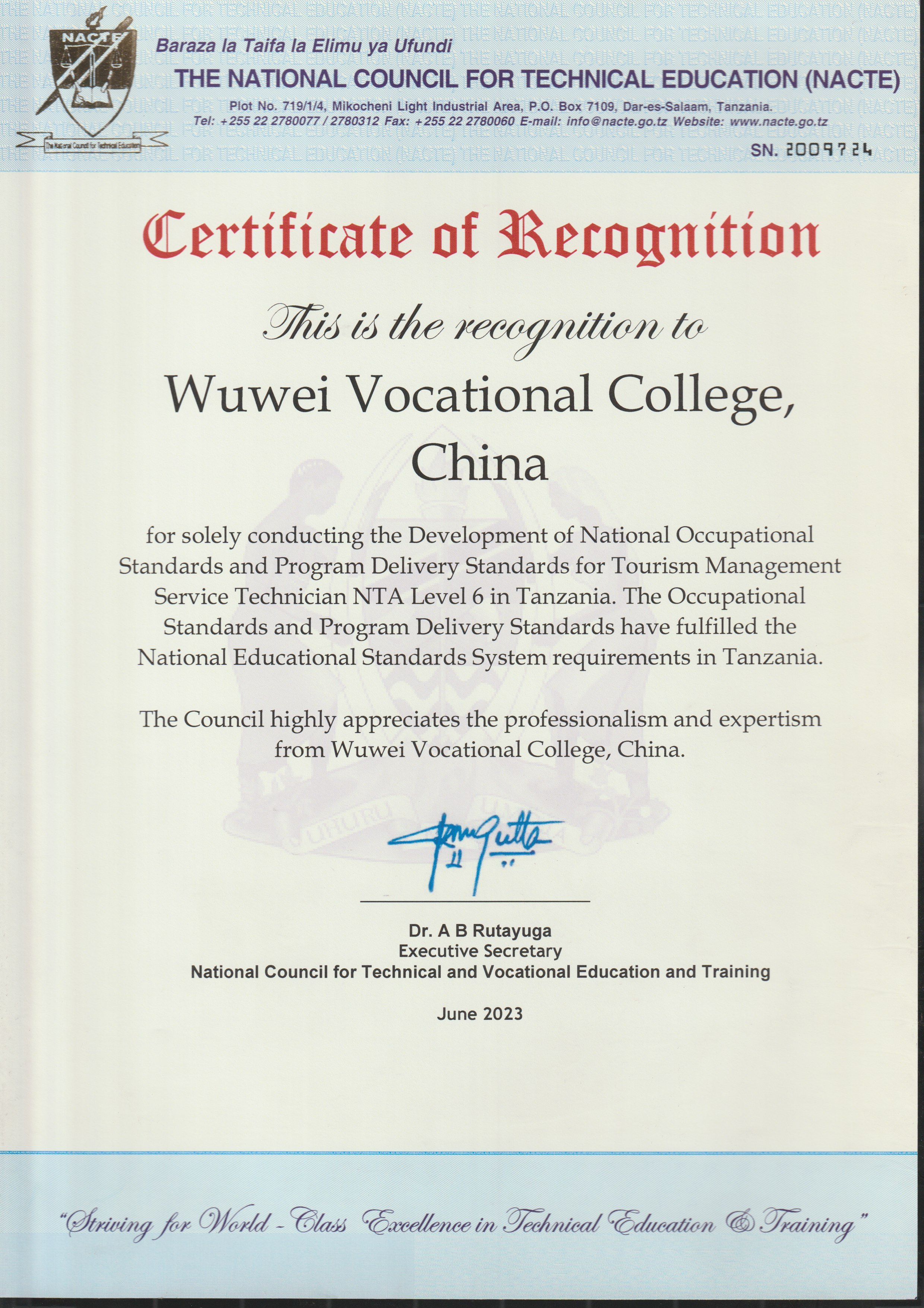獲得認證,是對我校貫徹落實“一帶一路”合作倡議的充分肯定。學校將以習近平新時代中國特色社會主義思想為指導,深入學習貫徹黨的二十大精神,把學校整體工作與推進“一帶一路”建設(shè)緊密結(jié)合起來,積極融入和服務(wù)國家開放大局,堅持問題導向、目標導向、結(jié)果導向,以高度的思想自覺、政治自覺和行動自覺,高標準、高質(zhì)量完成“坦桑尼亞國家職業(yè)標準開發(fā)項目”工作。