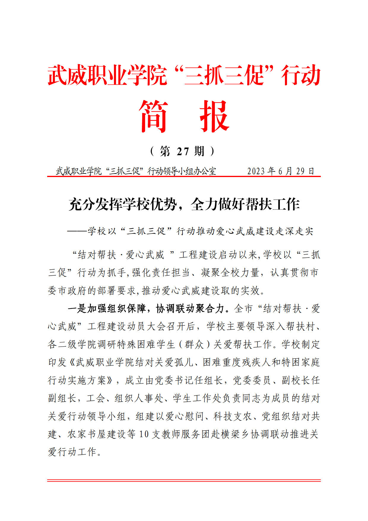 簡報第27期:充分發(fā)揮學(xué)校優(yōu)勢,全力做好幫扶工作——學(xué)校以“三抓三促”行動推動愛心武威建設(shè)走深走實(shí)