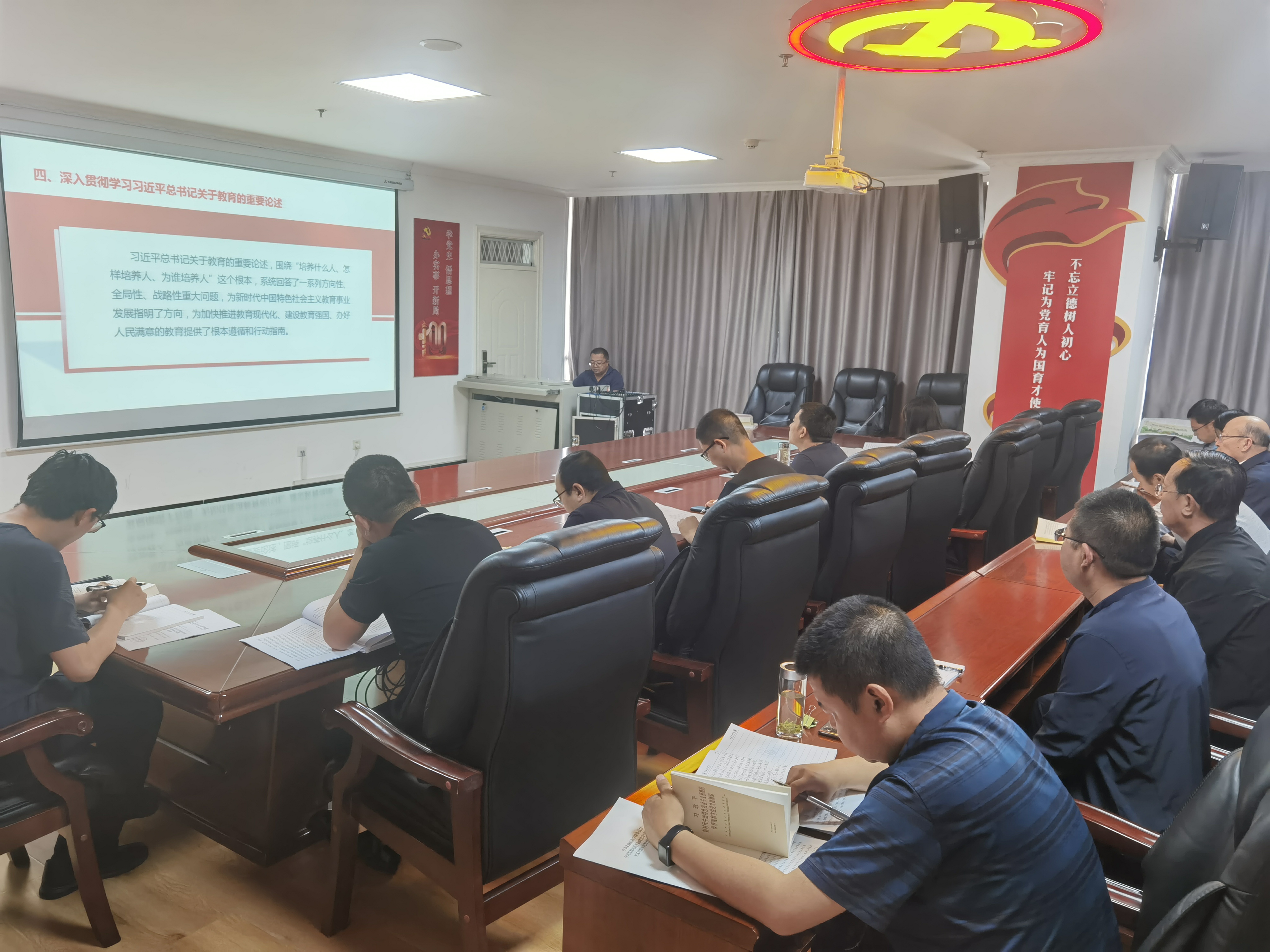 5月30日下午,行政第二黨支部書記魏全民在810會(huì)議室以《學(xué)習(xí)新思想 奮進(jìn)新征程 建功新時(shí)代》為題,并結(jié)合個(gè)人學(xué)思踐悟和教育教學(xué)工作實(shí)際,講授學(xué)習(xí)貫徹習(xí)近平新時(shí)代中國特色社會(huì)主義思想主題教育專題黨課,行政第二黨支部全體黨員參加。