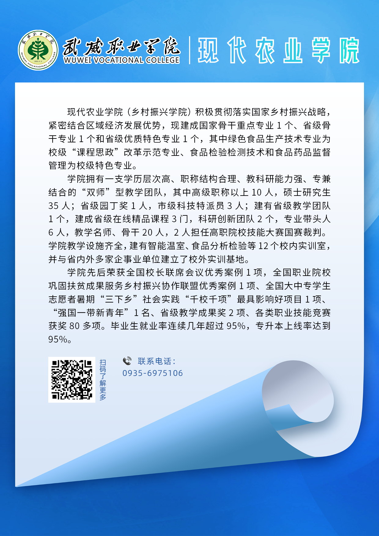 武威職業(yè)學院二級學院專業(yè)簡介丨現(xiàn)代農(nóng)業(yè)學院