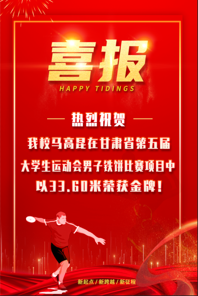 熱烈祝賀我校馬高昆在第五屆全省大學生運動會中獲得鐵餅金牌