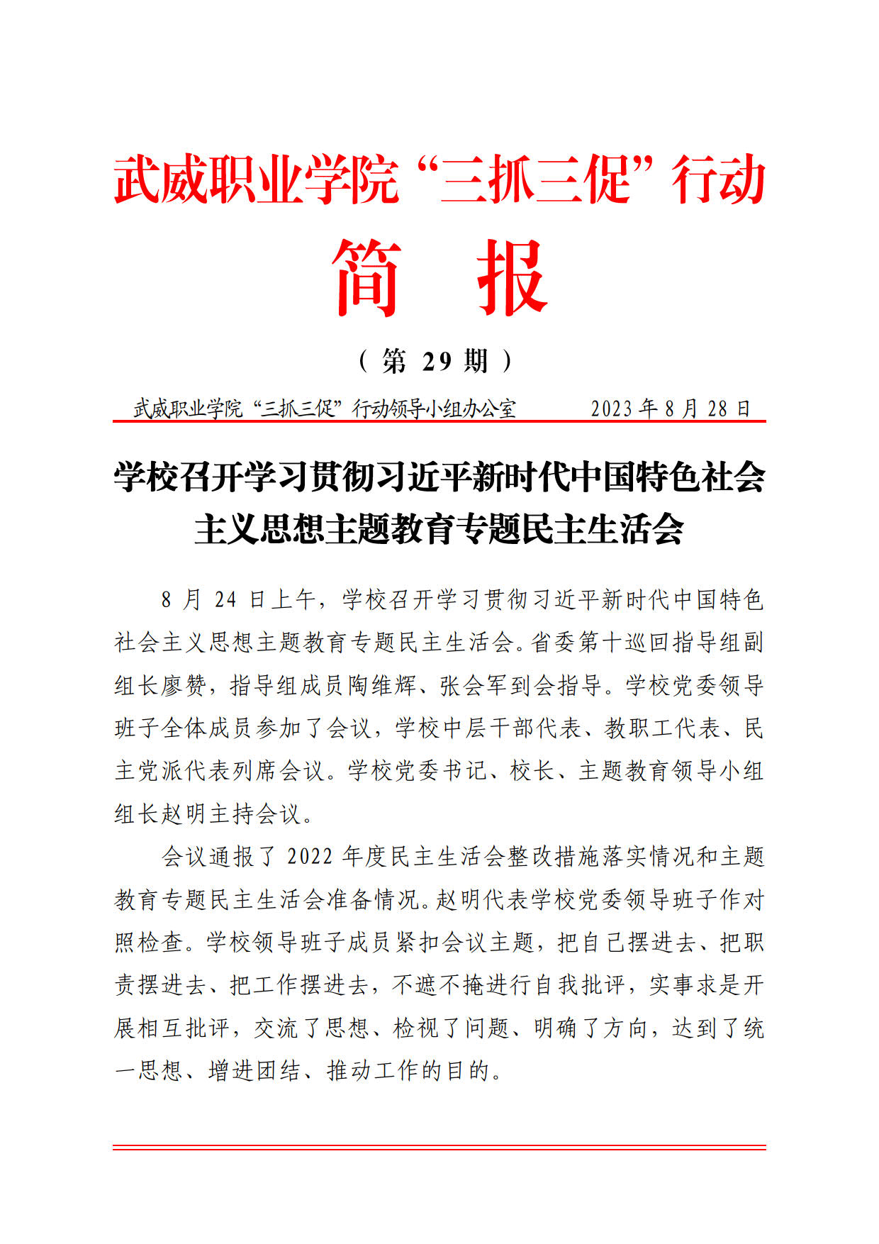 簡(jiǎn)報(bào)第29期:學(xué)校召開(kāi)學(xué)習(xí)貫徹習(xí)近平新時(shí)代中國(guó)特色社會(huì)主義思想主題教育專(zhuān)題民主生活會(huì)