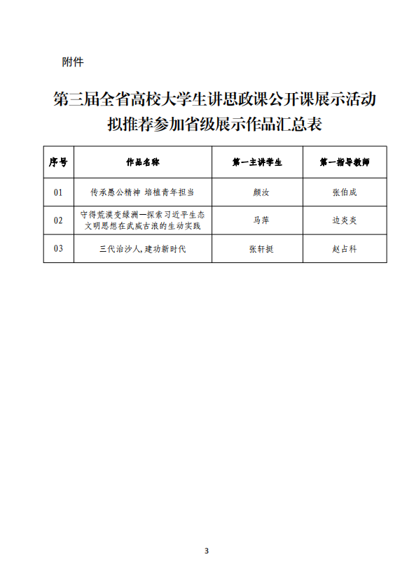 關(guān)于武威職業(yè)學(xué)院第三屆全省高校大學(xué)生講思政課公開課展示活動(dòng)評選結(jié)果的公示