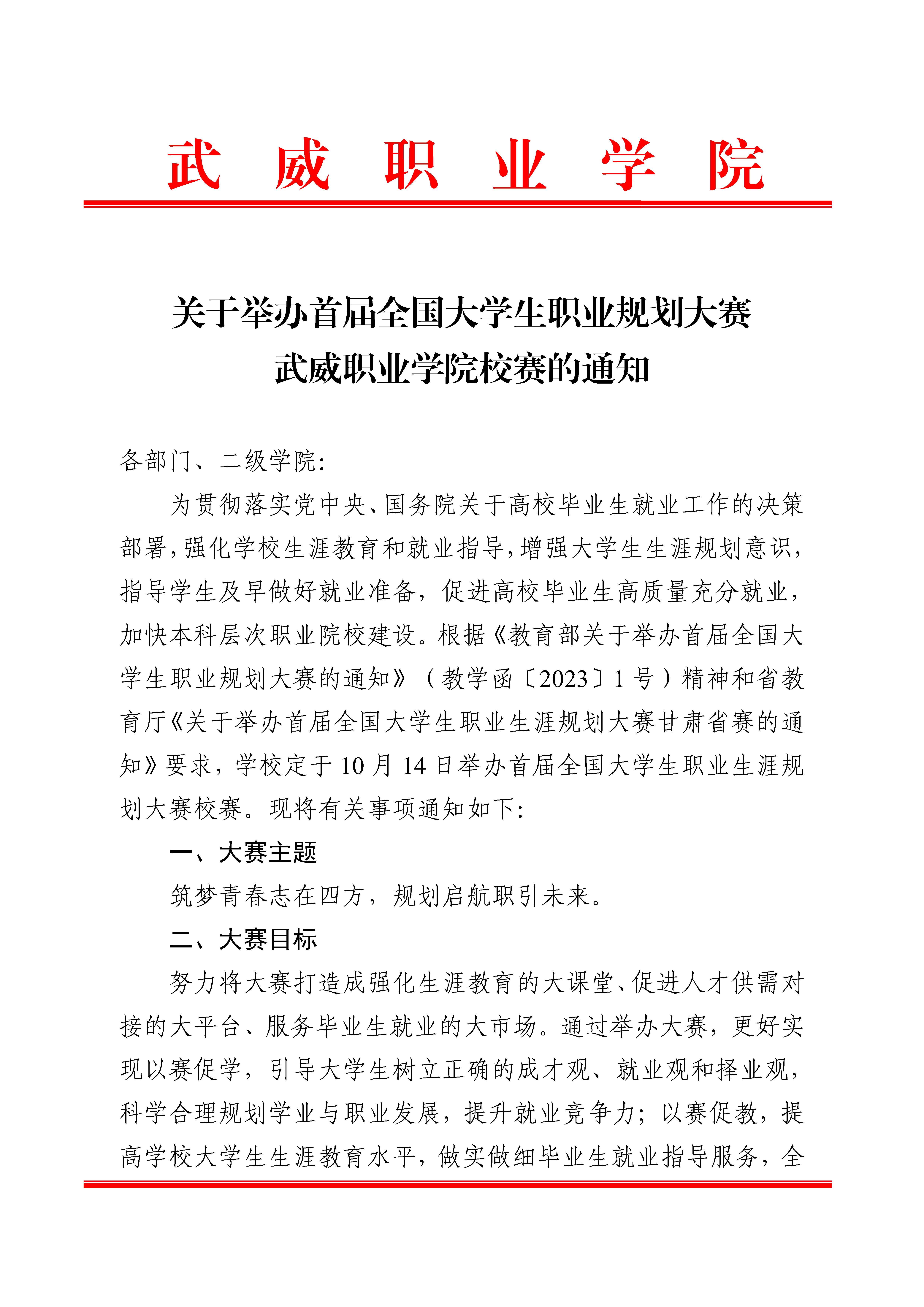 關于舉辦首屆全國大學生職業(yè)規(guī)劃大賽 武威職業(yè)學…
