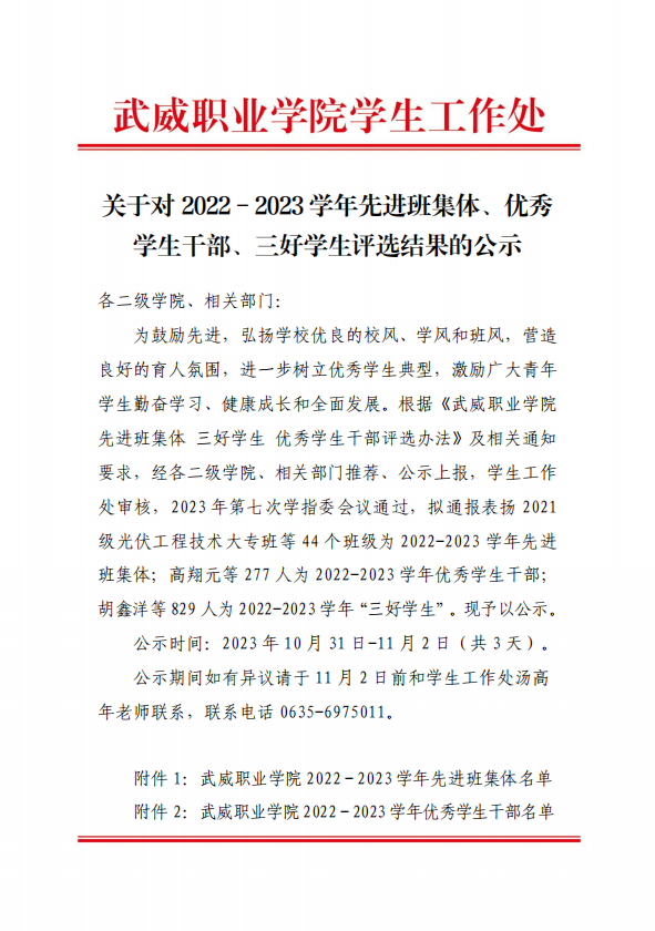 關(guān)于對(duì)2022-2023學(xué)年先進(jìn)班集體、優(yōu)秀學(xué)生干部、三好學(xué)生評(píng)選結(jié)果的公示