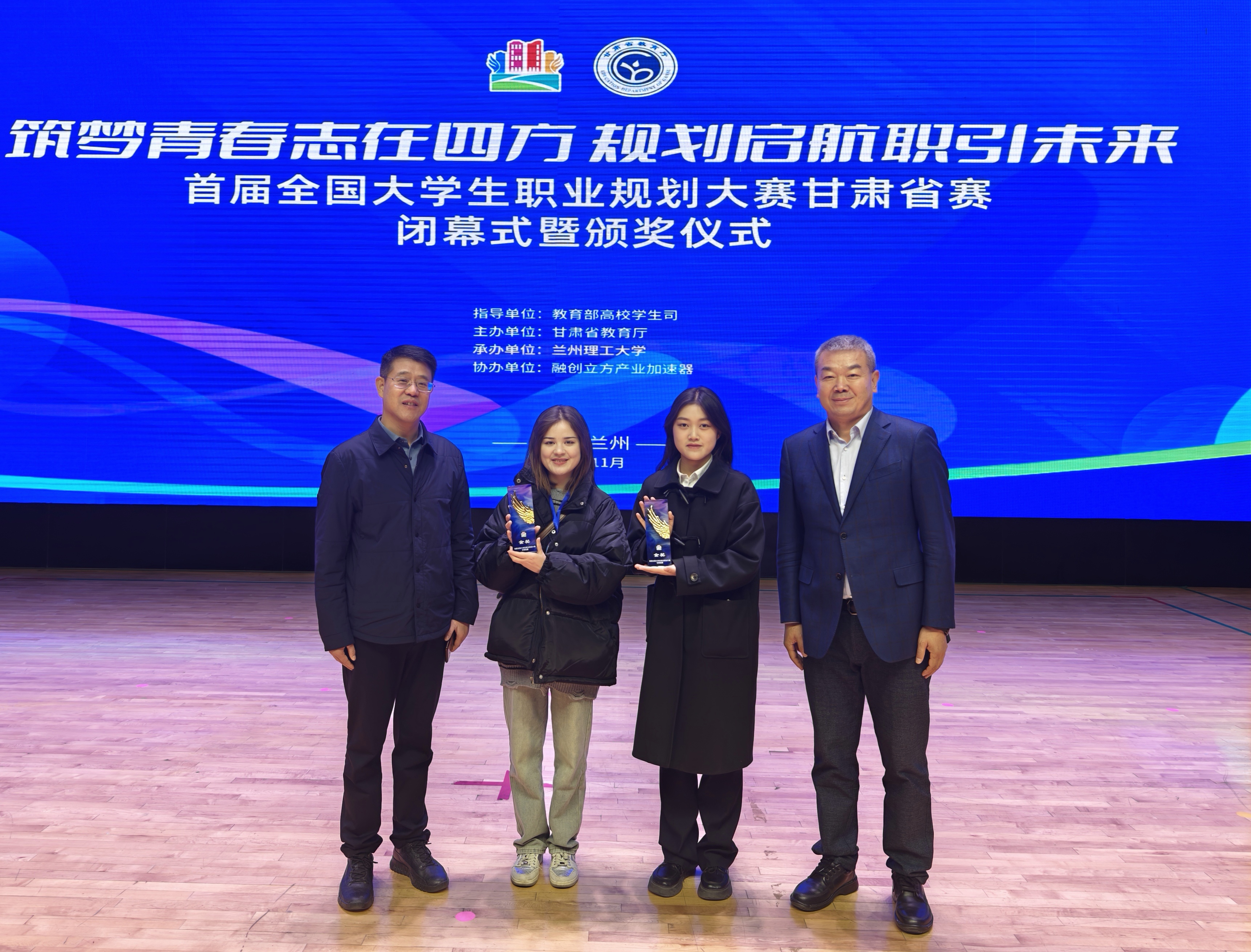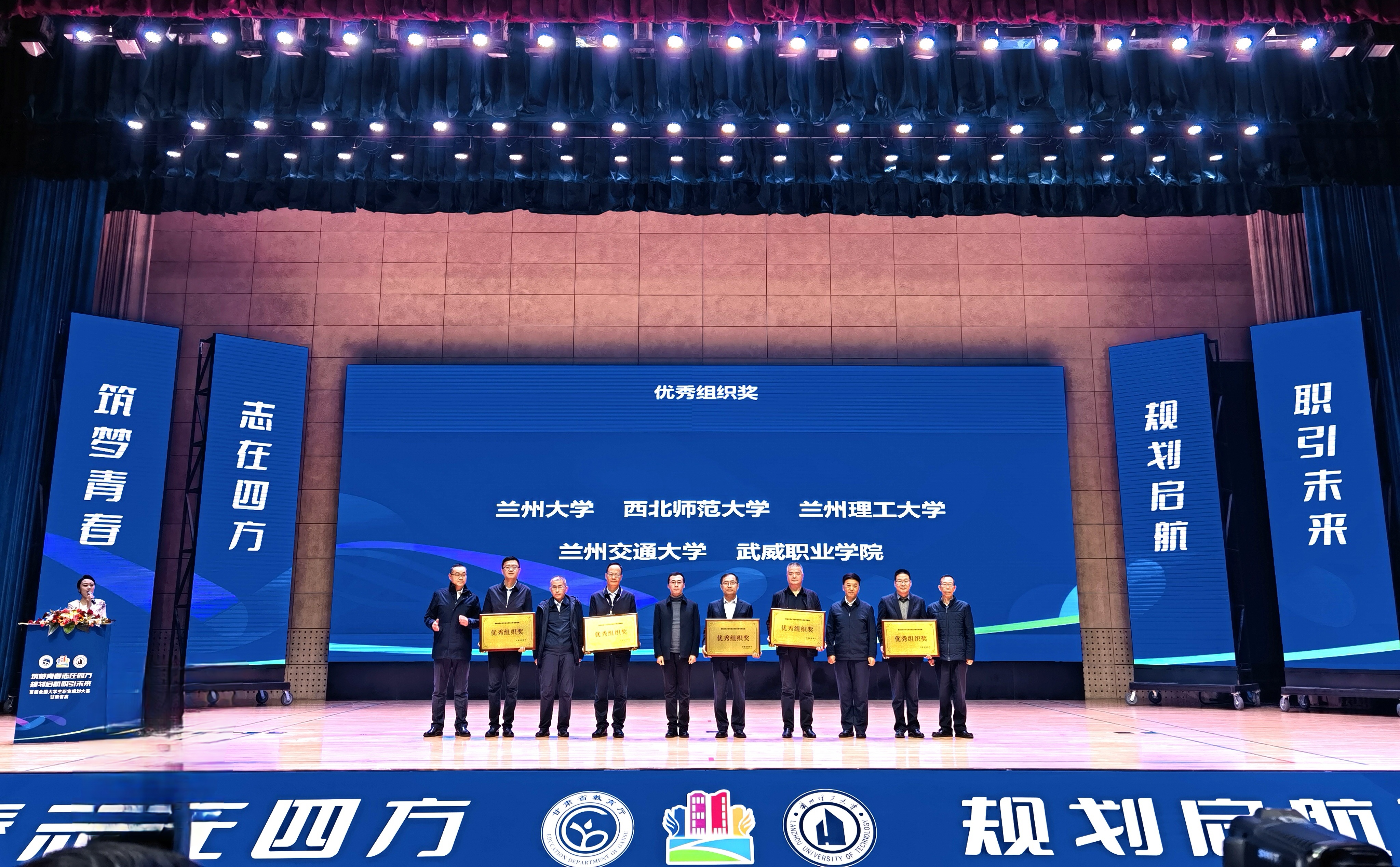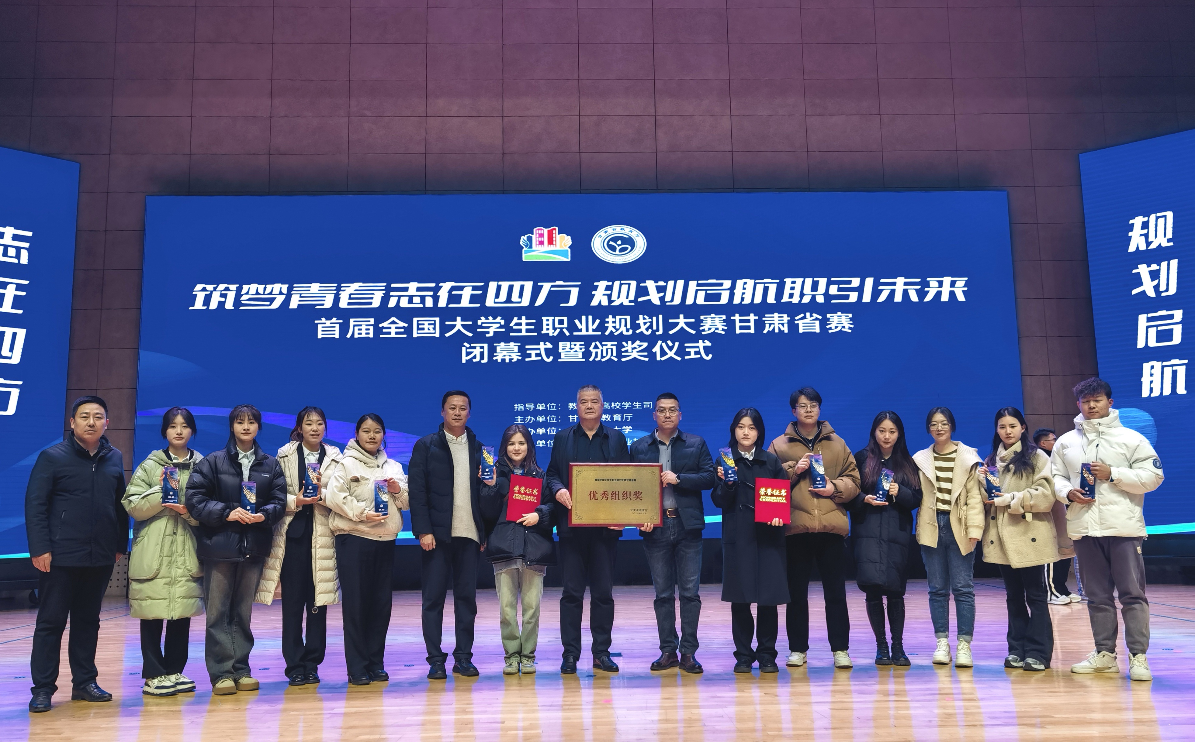 11月17日上午,“筑夢青春志在四方,規(guī)劃啟航職引未來”—首屆全國大學生職業(yè)規(guī)劃大賽甘肅省賽閉幕式暨頒獎儀式在蘭州理工大學體育館舉行。我校黨委委員、副校長王守云,招生就業(yè)處負責人董鵬帶隊參加閉幕式暨頒獎儀式。在職教組省級決賽中,兩個賽道分別設(shè)金獎5項,銀獎10項,銅獎15項。我校代表隊榮獲金獎2項、銀獎4項、銅獎4項,獲獎作品數(shù)目為全省第一。其中,經(jīng)濟管理學院2022級旅游管理專業(yè)學生顏汝榮獲成長賽道金獎第一名,并在閉幕式上作匯報展演。