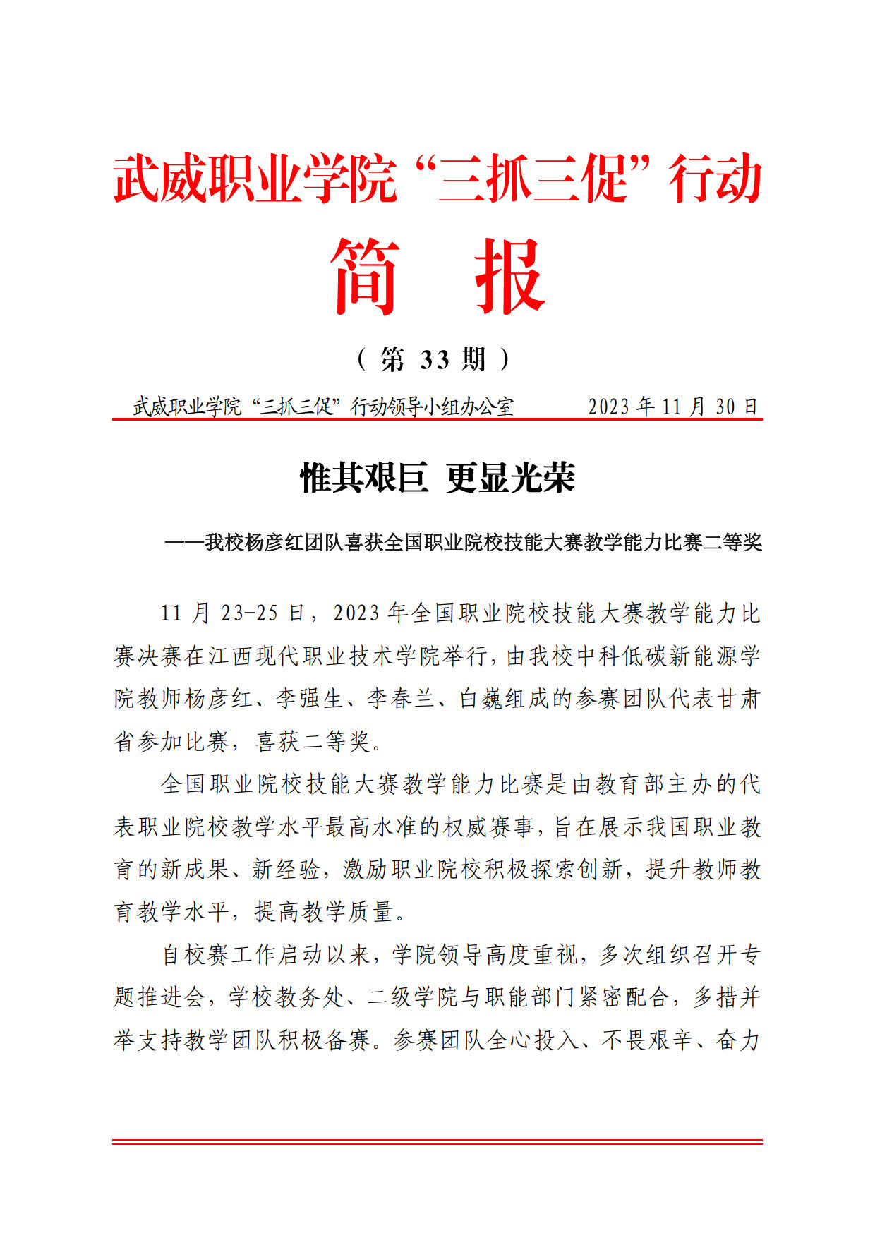 簡(jiǎn)報(bào)第33期:惟其艱巨 更顯光榮