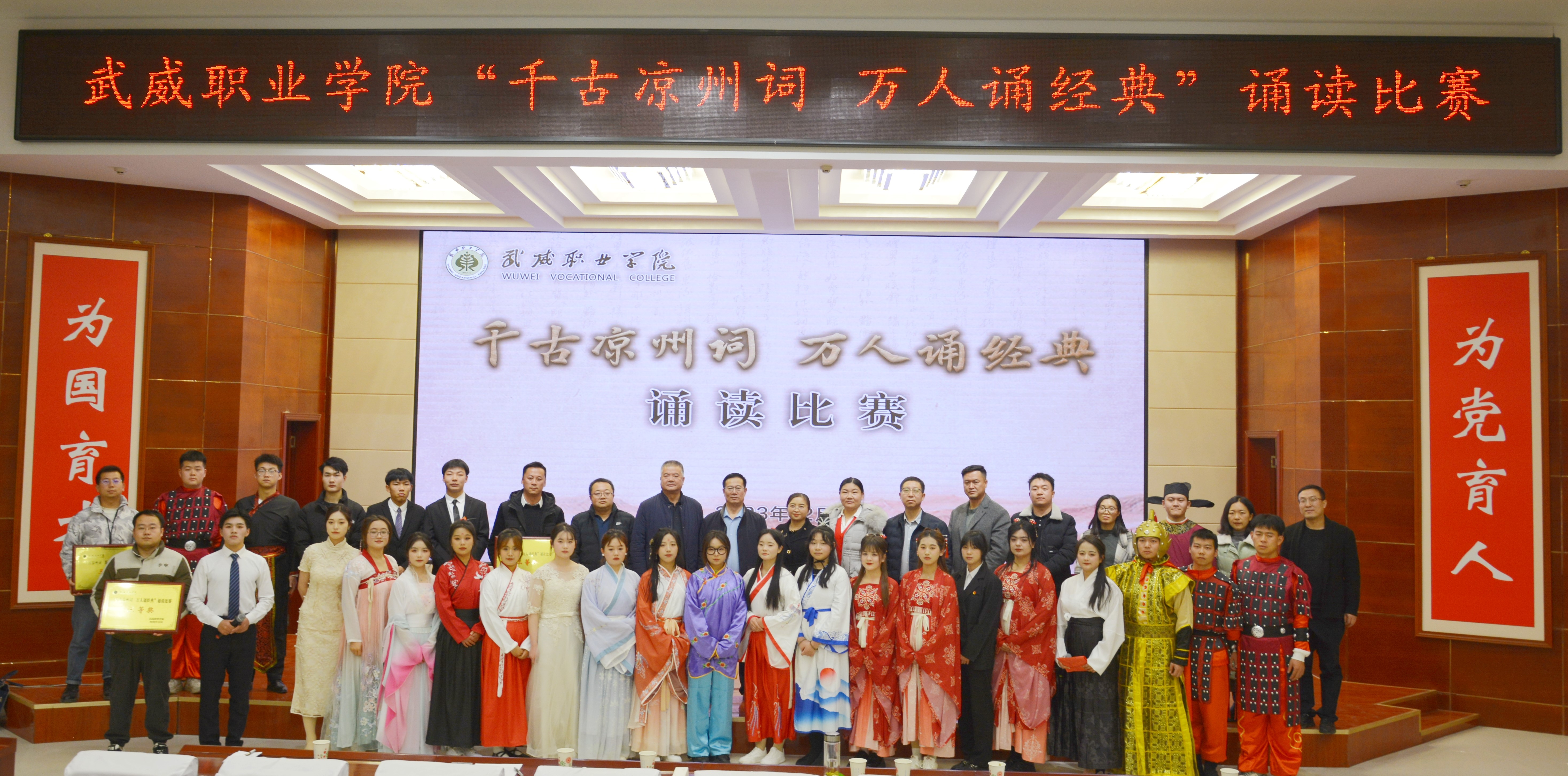 學(xué)校堅持“以文育人、以文化人”,圍繞“傳承涼州文脈,賦能文化自信”主題,以中華優(yōu)秀傳統(tǒng)文化為底蘊基石,以涼州文化為重要依托,打造出一系列根植地域文化的校園特色文化品牌活動,多舉措豐富文化育人內(nèi)涵,推動文化育人提質(zhì)增效,激勵武職學(xué)子凝心聚力續(xù)寫涼州豪放詞,篤定前行再譜武職新華章,全力為學(xué)校申辦武威職業(yè)技術(shù)大學(xué)貢獻青春力量!