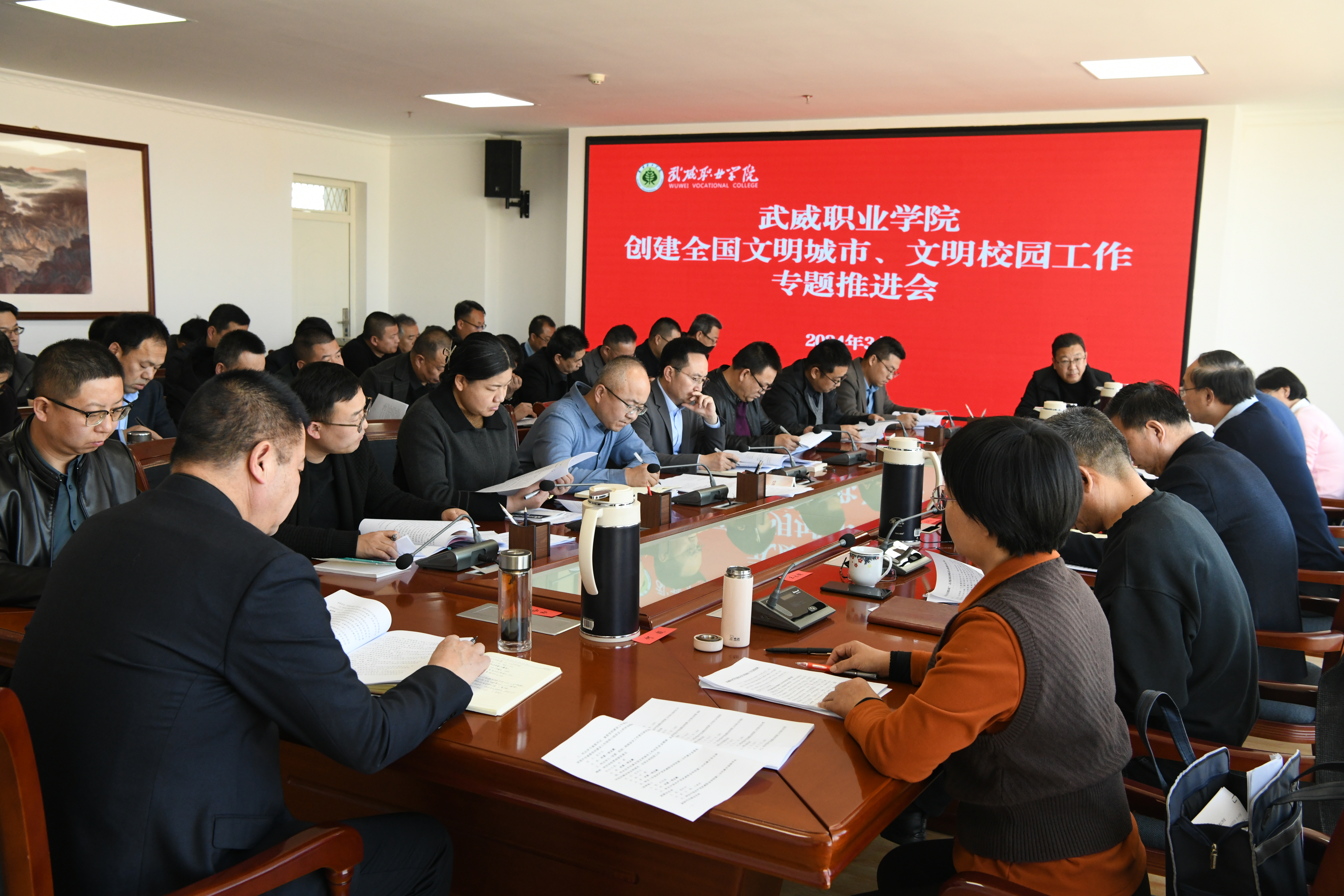 根據(jù)“武威市創(chuàng)建全國文明城市工作動(dòng)員大會(huì)”精神,3月8日下午,學(xué)校在能源科技樓811會(huì)議室召開了2024年創(chuàng)建全國文明城市、文明校園專題工作推進(jìn)會(huì)。黨委書記王宏,校長、副書記張開禮,黨委副書記翟存祥,副校長王永緒、田迎春、何毅,紀(jì)委書記、監(jiān)察專員陳曉煜,副校長王守云出席會(huì)議,各黨總支、直屬黨支部書記,各部門、二級(jí)學(xué)院負(fù)責(zé)人參加會(huì)議。會(huì)議由黨委書記王宏主持并作了講話。