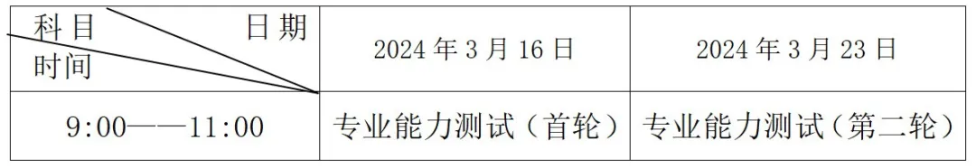 按照相關(guān)文件規(guī)定,滿足免試入學(xué)條件的考生須參加招生院校的專業(yè)能力測試。測試由省教育廳統(tǒng)一安排,招生院校具體實(shí)施。專業(yè)能力測試工作分兩輪進(jìn)行,首輪未完成該招生計(jì)劃的專業(yè)進(jìn)入第二輪測試。測試地點(diǎn)為甘肅省慶陽市西峰區(qū)蘭州路45號隴東學(xué)院本部,測試時間及科目如下: