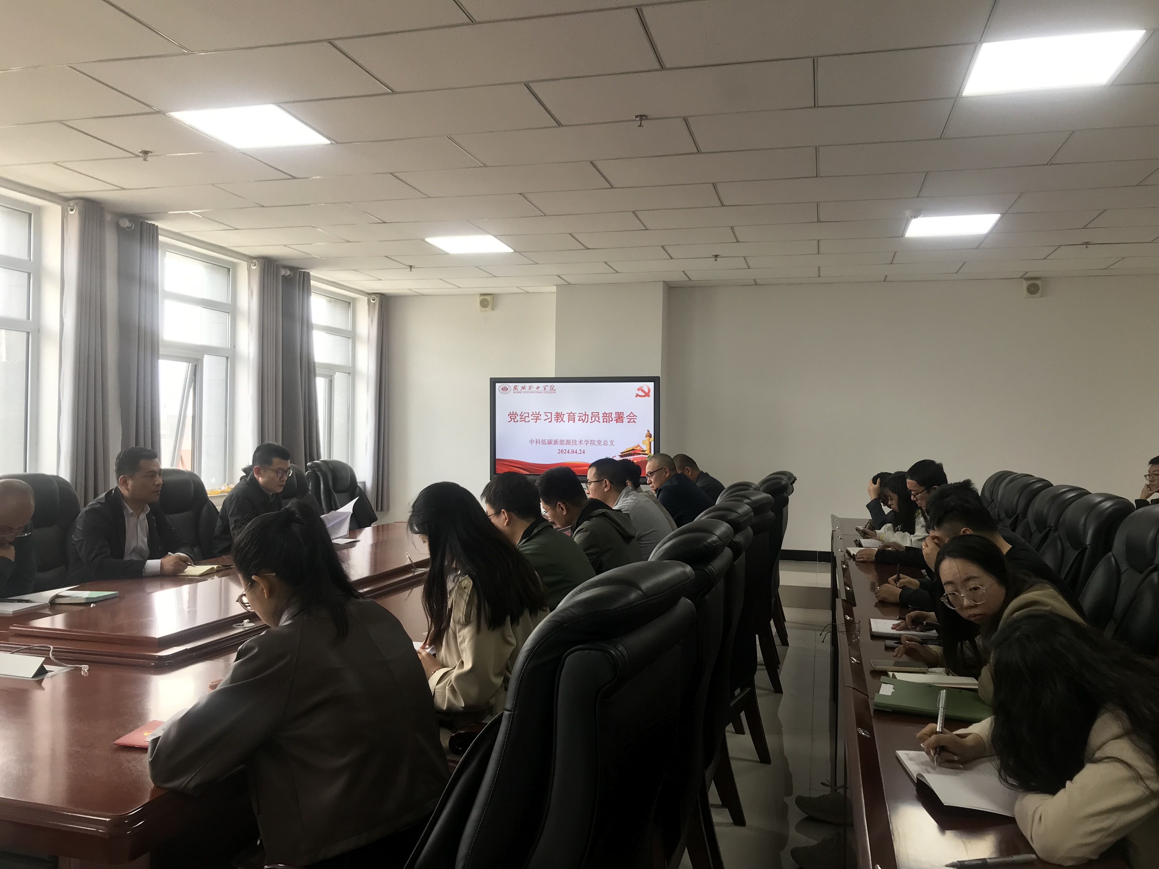 4月24日,中科低碳新能源技術學院黨總支召開黨紀學習教育動員部署會議,學院全體黨員參加會議,會議由學院黨總支書記胡建宏主持。