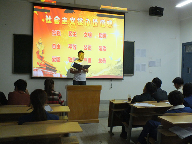為深入學(xué)習(xí)貫徹黨的十八大精神和習(xí)近平總書記系列講話中關(guān)于大力推進(jìn)社會(huì)主義核心價(jià)值體系建設(shè)的要求,積極響應(yīng)院團(tuán)委的號(hào)召,我系于4月14日組織師生在4號(hào)教學(xué)樓313教室開(kāi)展了“社會(huì)主義核心價(jià)值觀引領(lǐng)我成長(zhǎng)”主題演講比賽。