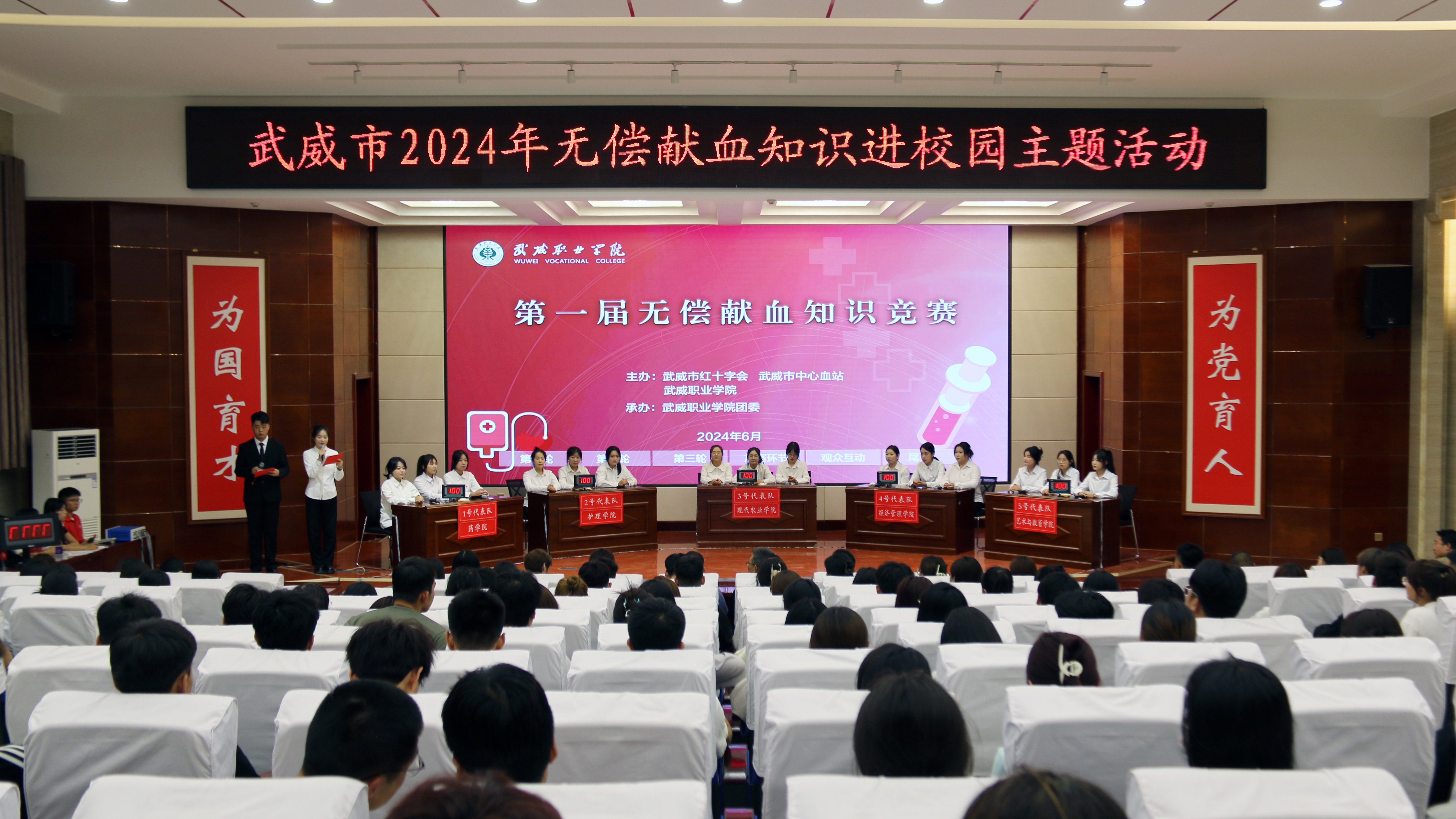 血液是生命的源泉,愛心是生命的曙光。6月17日,由武威職業(yè)學(xué)院、武威市紅十字會、武威市中心血站共同主辦的無償獻血知識競賽在菁英廳舉辦。