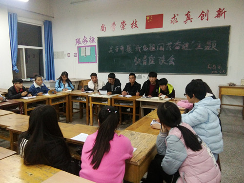 通過組織各班團干部開展 “我與祖國共奮進”主題座談會,讓團干部們對歷史有了深刻的了解,也讓同學們在這次座談會中深刻領悟到身為中華兒女要勿忘恥辱,為實現(xiàn)中華民族偉大復興的中國夢而勤奮學習。同時,各班團支部以形式多樣的主題團會,表達出為了實現(xiàn)“中國夢”,讓屈辱的歷史不再重演,將要萬分珍惜今天這來之不易的和平生活,努力學習,不斷進取。