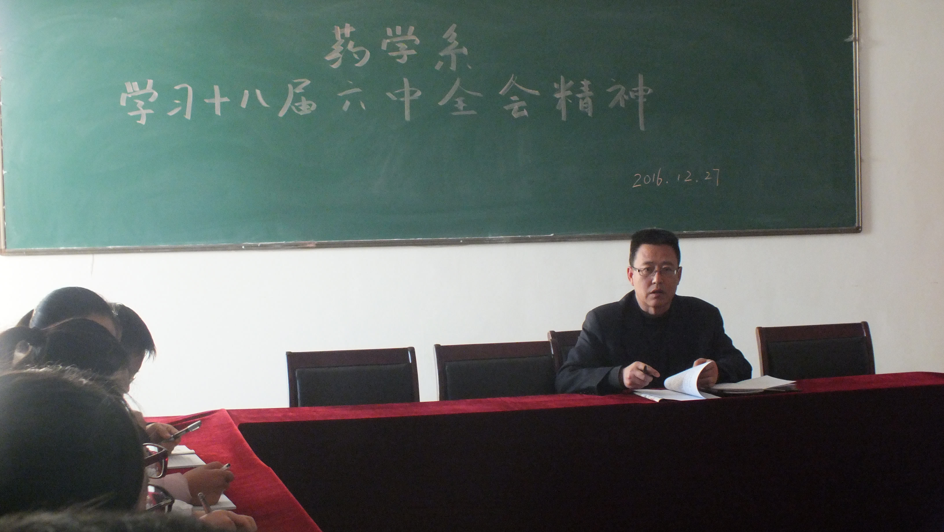 為認(rèn)真學(xué)習(xí)領(lǐng)會黨的十八屆六中全會重要精神,全面加強(qiáng)我系黨的建設(shè),更好地推動我系各項工作開展,2016年12月27日下午,藥學(xué)系在明遠(yuǎn)樓522會議室召開了黨的十八屆六中全會精神專題學(xué)習(xí)會。藥學(xué)系全體黨員和教師參加了本次學(xué)習(xí)會,會議由藥學(xué)系主任魏潤明主持。