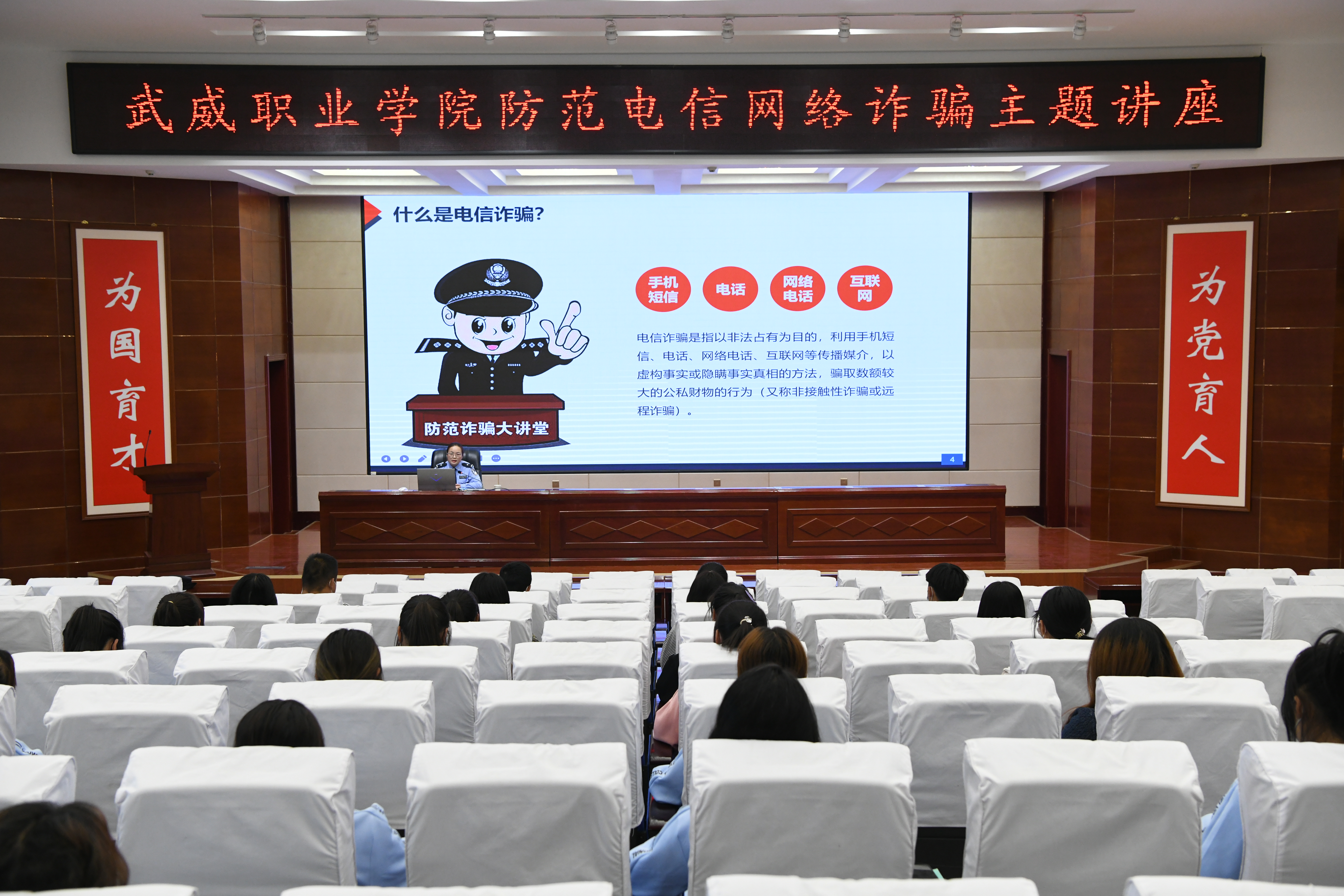 為了提高學(xué)校師生識(shí)別和防范電信網(wǎng)絡(luò)詐騙的能力,切實(shí)做好防范電信網(wǎng)絡(luò)詐騙宣傳教育工作。9月30日,學(xué)校聯(lián)合武威市公安局涼州分局西關(guān)派出所在學(xué)生發(fā)展中心菁英廳舉辦防范電信網(wǎng)絡(luò)詐騙專題講座。各二級(jí)學(xué)院師生代表聆聽了講座,講座由安全保衛(wèi)處負(fù)責(zé)人李欣主持。