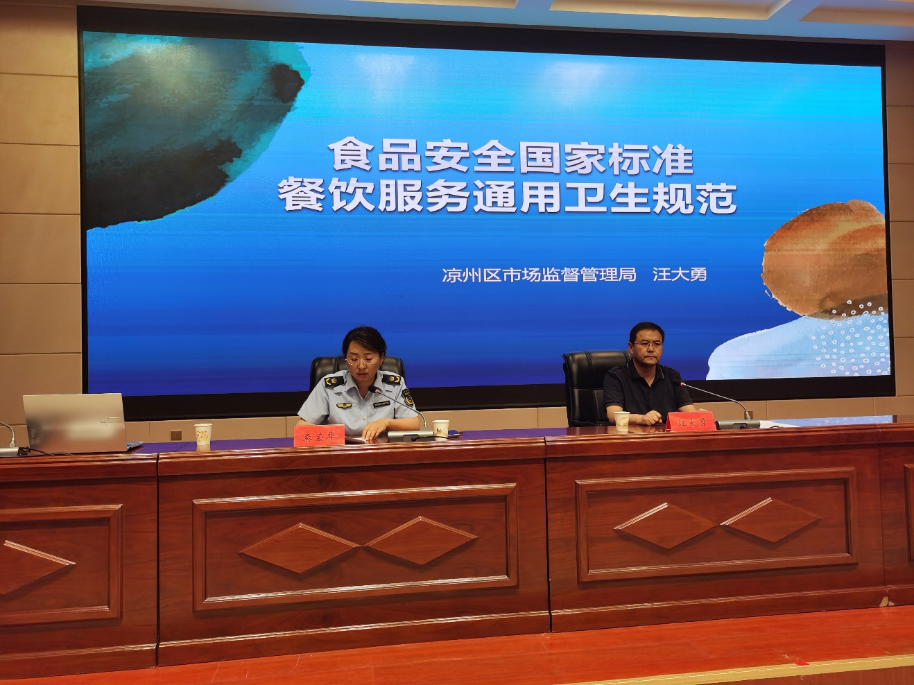 為加強學校食品安全管理,提升從業(yè)人員食品安全意識和服務水平,強化操作流程規(guī)范化、嚴格化、制度化和日常行為習慣養(yǎng)成,切實做好學校師生飲食安全保障工作。7月13日,學校邀請涼州區(qū)市場監(jiān)督管理局副局長汪大勇同志對學校食堂從業(yè)人員進行食品安全知識培訓,學校食堂相關經營單位負責人和從業(yè)人員180多人參加了培訓。會議由學校黨委委員、副校長王永緒同志主持。