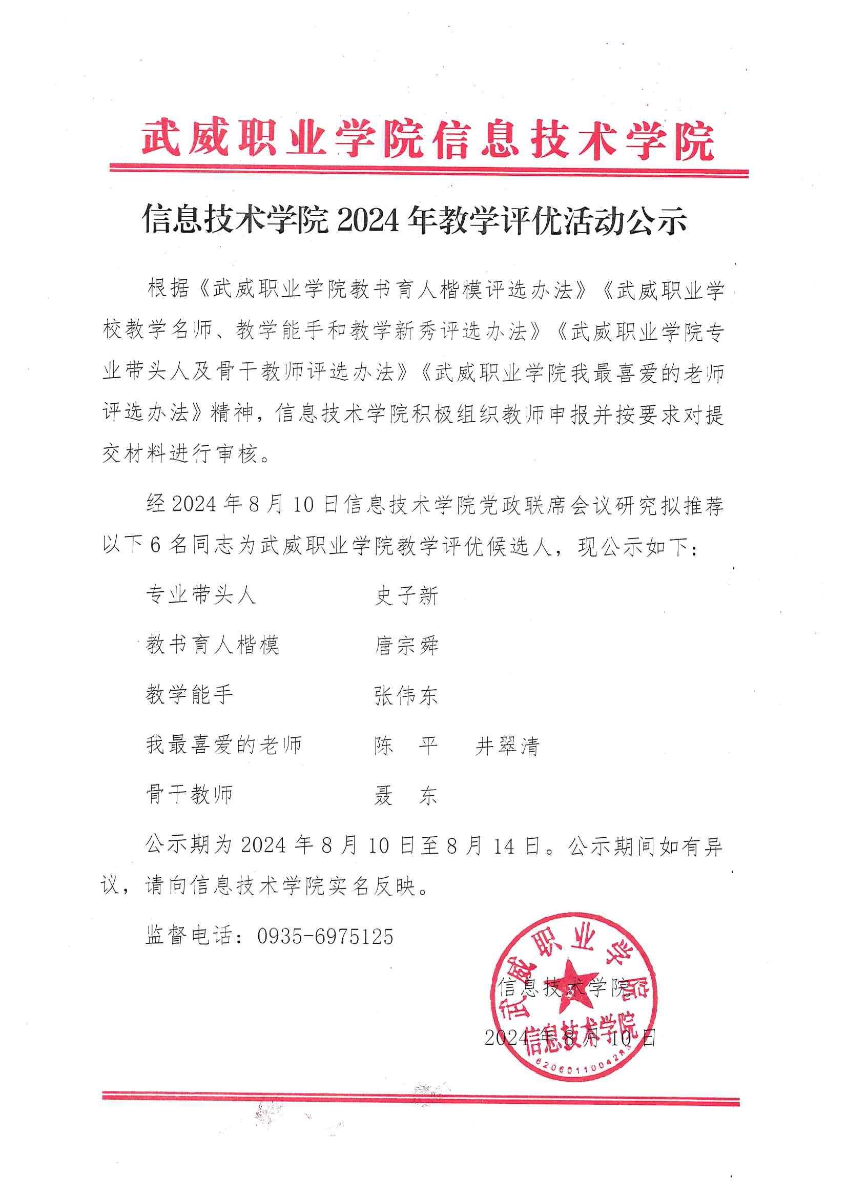 信息技術學院關于2024年教學評優(yōu)活動公示