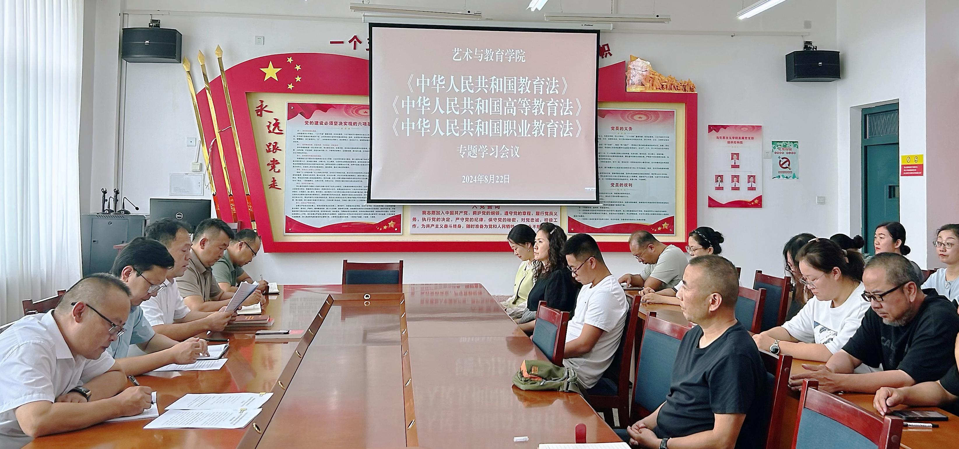 為進(jìn)一步提高教師的法律法規(guī)意識(shí),加強(qiáng)教師的師德師風(fēng)建設(shè),轉(zhuǎn)變觀念、解放思想,樹(shù)立現(xiàn)代職業(yè)教育觀念,扎實(shí)推動(dòng)教育教學(xué)工作高質(zhì)量發(fā)展,8月22日下午,藝術(shù)與教育學(xué)院組織全體教職工專題學(xué)習(xí)《中華人民共和國(guó)教育法》《中華人民共和國(guó)高等教育法》《中華人民共和國(guó)職業(yè)教育法》等教育相關(guān)法律法規(guī)及政策文件。會(huì)議由黨總支書(shū)記王政主持。