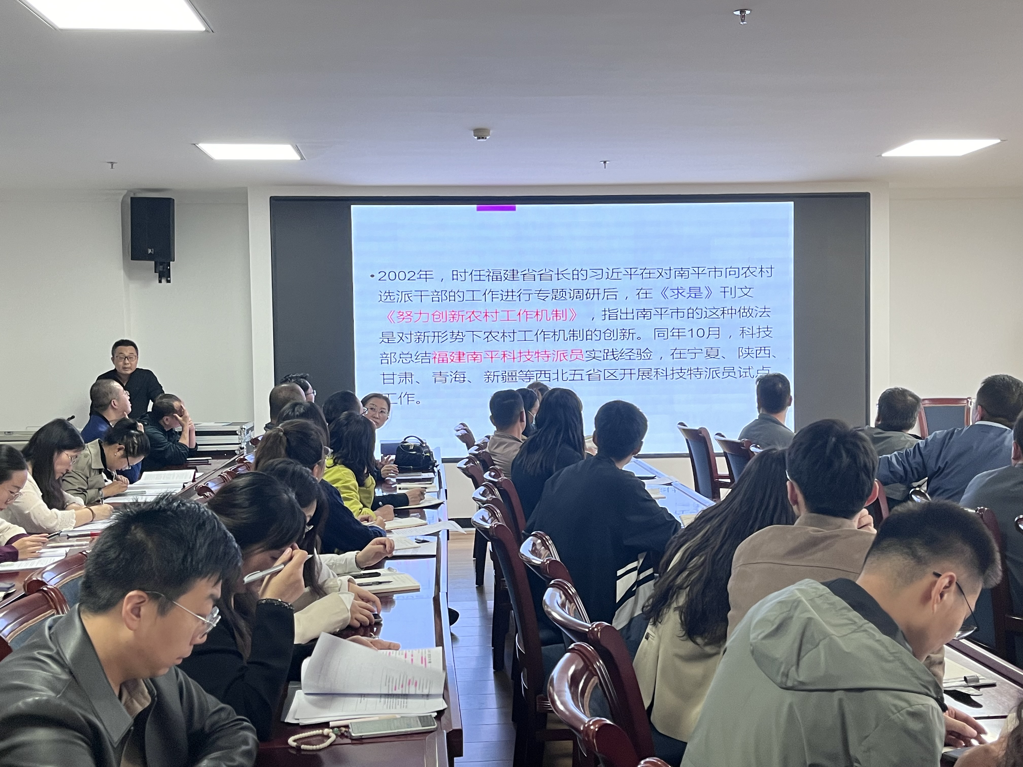 首先,科技處處長蔡柱山帶領(lǐng)科技特派員及全體工作人員學(xué)習(xí)了《習(xí)近平總書記關(guān)于科技特派員工作指示精神摘錄》《武威市科技特派員管理辦法》《武威市2024年科技特派員工作要點(diǎn)》《武威職業(yè)學(xué)院科技特派員、“三區(qū)”科技人才管理辦法》等文件精神。會(huì)議開展了交流活動(dòng),現(xiàn)場氣氛活躍,互動(dòng)頻繁。4名科技特派員優(yōu)秀代表發(fā)言,分享了自己在科技服務(wù)中的收獲感想,激勵(lì)大家持續(xù)開展科技服務(wù)工作,增強(qiáng)做好科技特派員工作的責(zé)任感和使命感。最后,蔡柱山作總結(jié)講話,提出了工作要求及希望,指出各位科技特派員和“三區(qū)”科技人才要加強(qiáng)理論學(xué)習(xí),不斷提升科技服務(wù)能力;要堅(jiān)持創(chuàng)新實(shí)踐,全力推進(jìn)工作走深走實(shí);要強(qiáng)化示范引領(lǐng),努力打造典型科技創(chuàng)新支撐能力。