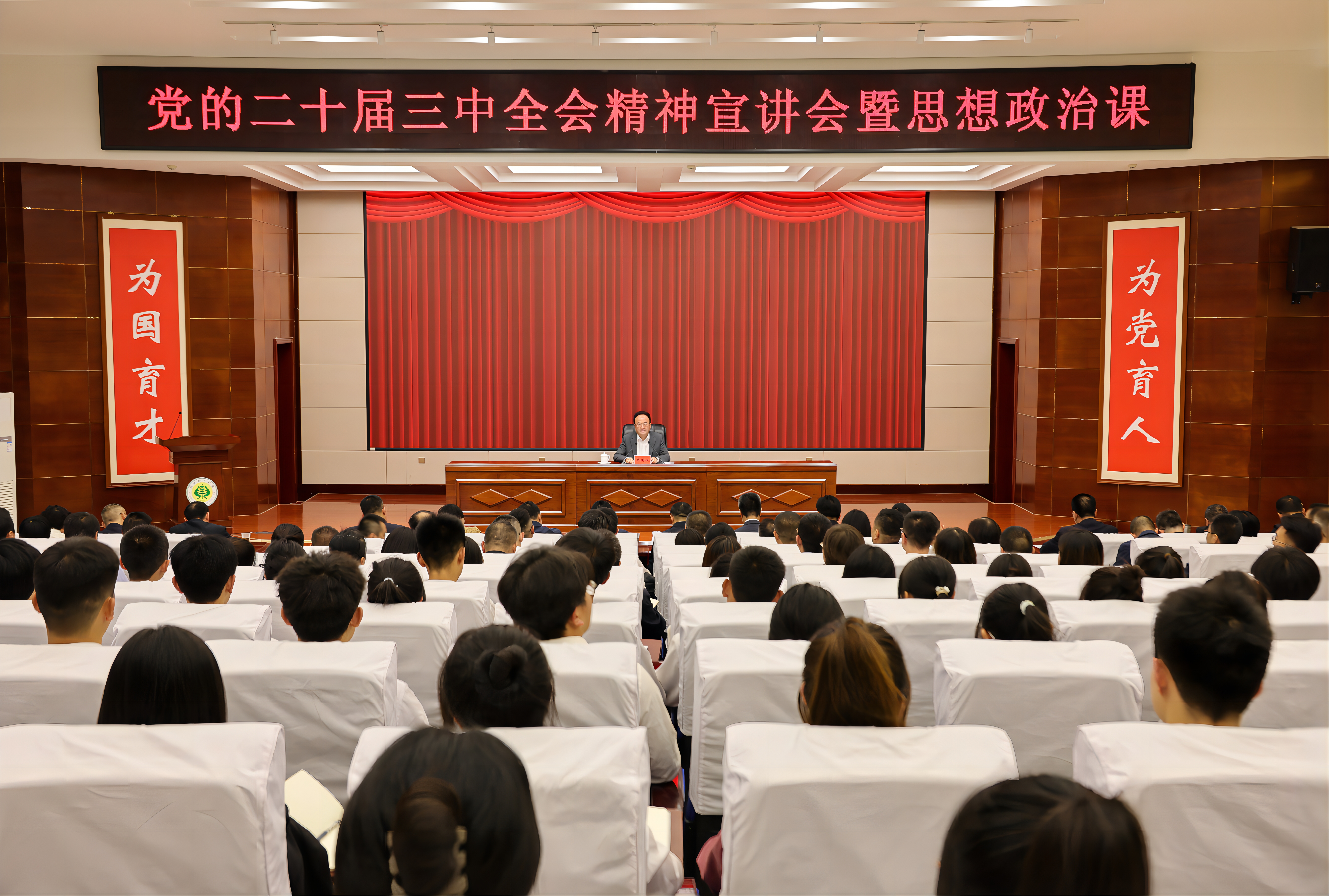 9月23日,市委書記王國(guó)斌來(lái)到武威職業(yè)學(xué)院,調(diào)研學(xué)院發(fā)展和思想政治建設(shè)情況,向廣大師生宣講黨的二十屆三中全會(huì)精神,講授思想政治課。王國(guó)斌勉勵(lì)青年學(xué)生牢記習(xí)近平總書記對(duì)新時(shí)代青年的殷切寄語(yǔ),學(xué)深悟透黨的二十屆三中全會(huì)精神,胸懷理想、激揚(yáng)青春,以青春之我、奮斗之我,勇?lián)鷷r(shí)代使命任務(wù),在中國(guó)式現(xiàn)代化武威實(shí)踐中放飛青春夢(mèng)想。王國(guó)斌從進(jìn)一步全面深化改革的重大意義、重大成就、重大部署、重大舉措等方面對(duì)黨的二十屆三中全會(huì)精神進(jìn)行了宣講和闡釋,并與學(xué)院師生分享了學(xué)習(xí)感悟和體會(huì)。他強(qiáng)調(diào),黨的二十屆三中全會(huì)對(duì)深化教育綜合改革作出系統(tǒng)部署,提出了一系列重點(diǎn)舉措,為我們深化教育領(lǐng)域綜合改革指明了實(shí)踐路徑。要全面貫徹落實(shí)全會(huì)關(guān)于深化教育綜合改革的新部署新要求,系統(tǒng)謀劃武威教育改革實(shí)踐路徑,抓實(shí)抓細(xì)各項(xiàng)改革任務(wù),確保教育領(lǐng)域綜合改革取得實(shí)實(shí)在在成效。王國(guó)斌強(qiáng)調(diào),推進(jìn)中國(guó)式現(xiàn)代化武威實(shí)踐,需要廣大青年奮發(fā)有為、勇挑大梁,展現(xiàn)新作為、干出新業(yè)績(jī)。希望青年學(xué)子自覺(jué)沿著習(xí)近平總書記指引的方向茁壯成長(zhǎng),以堅(jiān)定信念把穩(wěn)思想之舵,以擔(dān)當(dāng)實(shí)干實(shí)現(xiàn)人生價(jià)值,以高強(qiáng)本領(lǐng)夯實(shí)發(fā)展之基,以實(shí)干篤行書寫人生精彩,在追逐夢(mèng)想的新征程上描繪無(wú)悔于青春的絢麗畫卷。廣大教師要堅(jiān)守教書育人、立德樹(shù)人的使命,做學(xué)生錘煉品格、學(xué)習(xí)知識(shí)、創(chuàng)新思維、奉獻(xiàn)祖國(guó)的引路人。職業(yè)學(xué)院要把創(chuàng)建武威職業(yè)技術(shù)大學(xué)作為學(xué)校實(shí)現(xiàn)跨越式發(fā)展的頭等大事,以創(chuàng)建本科層次職業(yè)學(xué)校為抓手,借勢(shì)改革東風(fēng),持續(xù)優(yōu)化辦學(xué)條件,加力提速推進(jìn)武威職業(yè)技術(shù)大學(xué)創(chuàng)建工作,力爭(zhēng)早日辦成屬于武威人民的第一所本科院校。市領(lǐng)導(dǎo)華偉、王強(qiáng)參加,武威職業(yè)學(xué)院師生代表聆聽(tīng)了宣講。