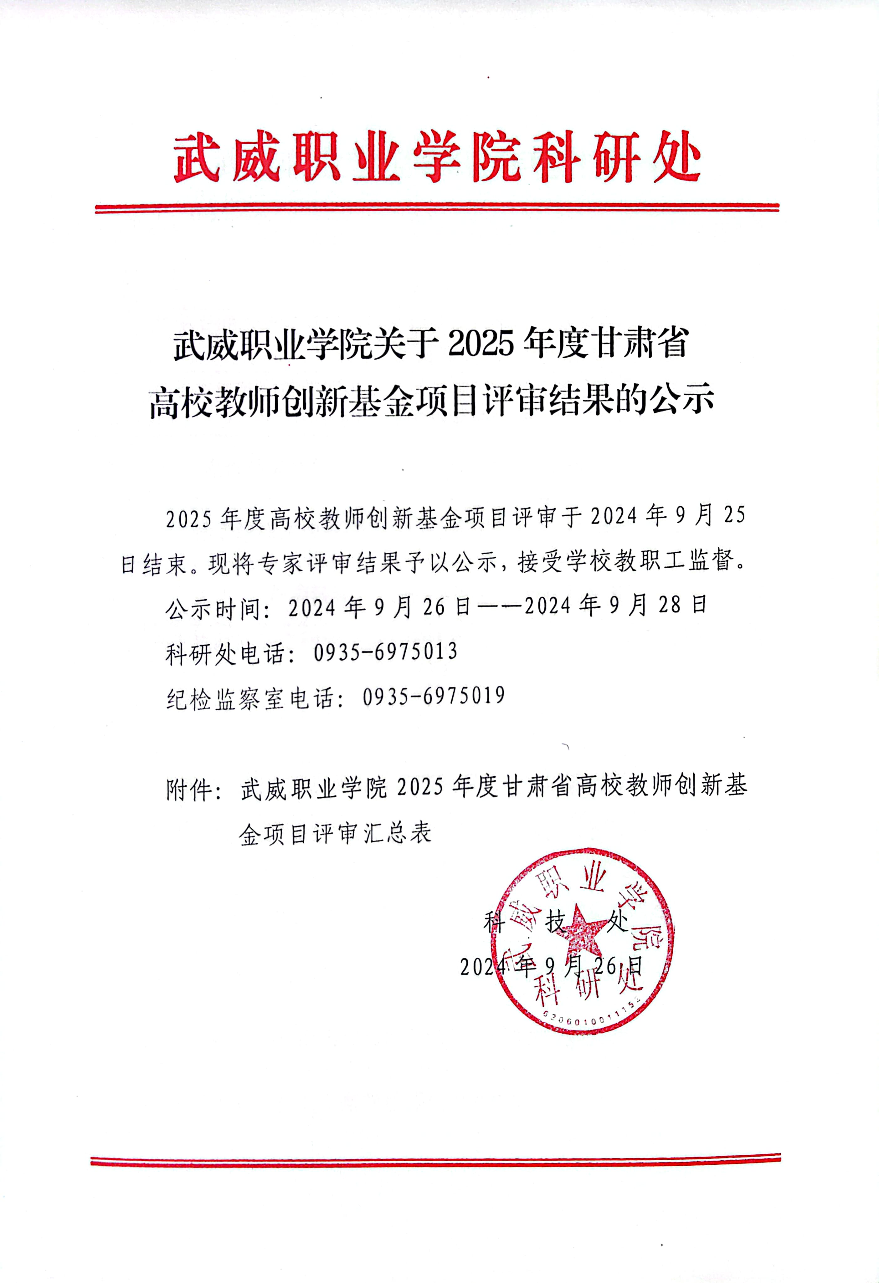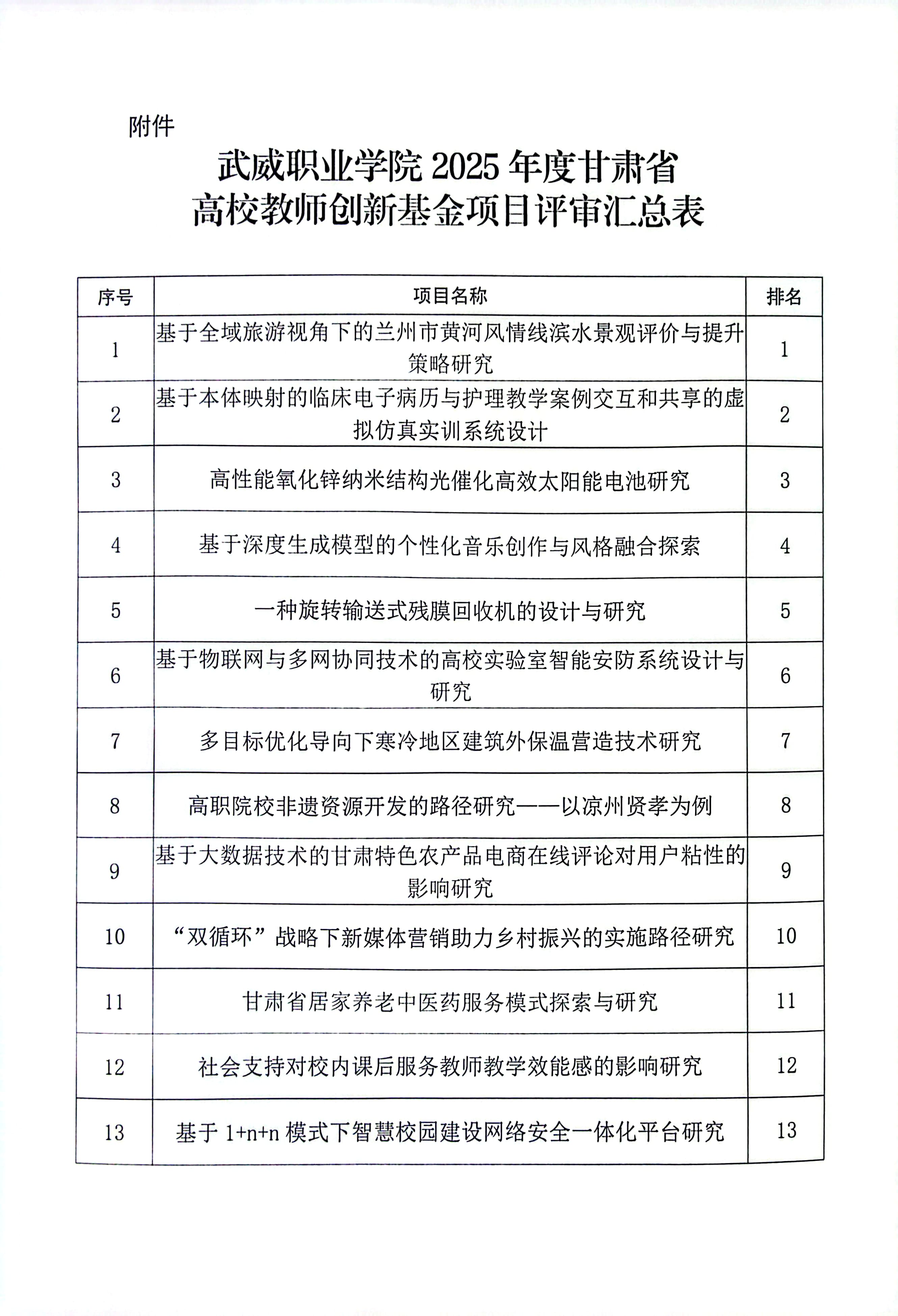 武威職業(yè)學院關(guān)于2025年度甘肅省高校教師創(chuàng)新基金項目評審結(jié)果的公示