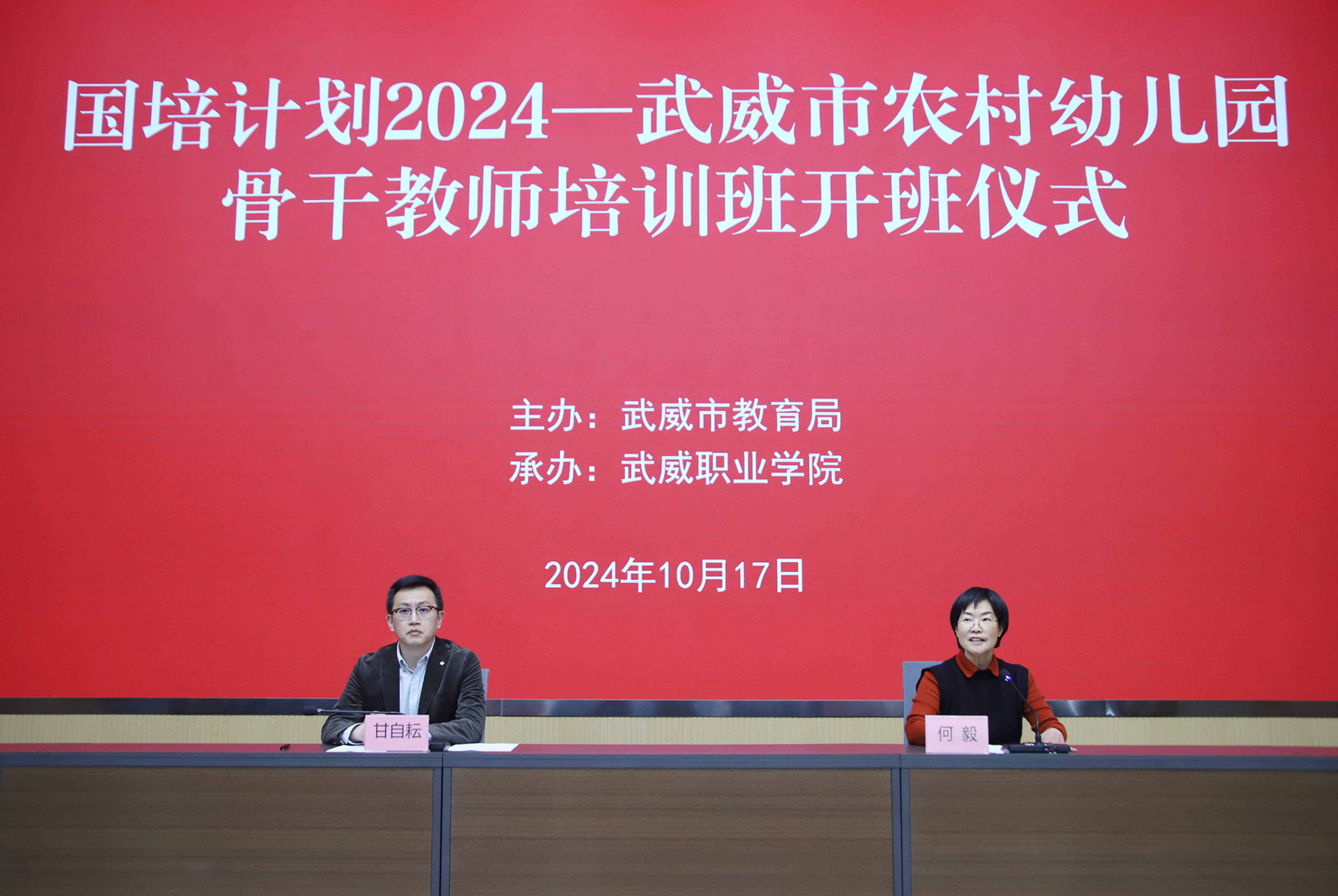 10月17日上午,由武威市教育局主辦,我校承辦的“國培計劃(2024)”—武威市農(nóng)村幼兒園骨干教師培訓(xùn)班在能源科技樓一樓報告廳順利開班,來自我市各農(nóng)村幼兒園的80名骨干教師參加培訓(xùn)。武威市教育局黨組成員、副局長甘自耘出席開班儀式。學(xué)校黨委委員、副校長何毅主持開班儀式。