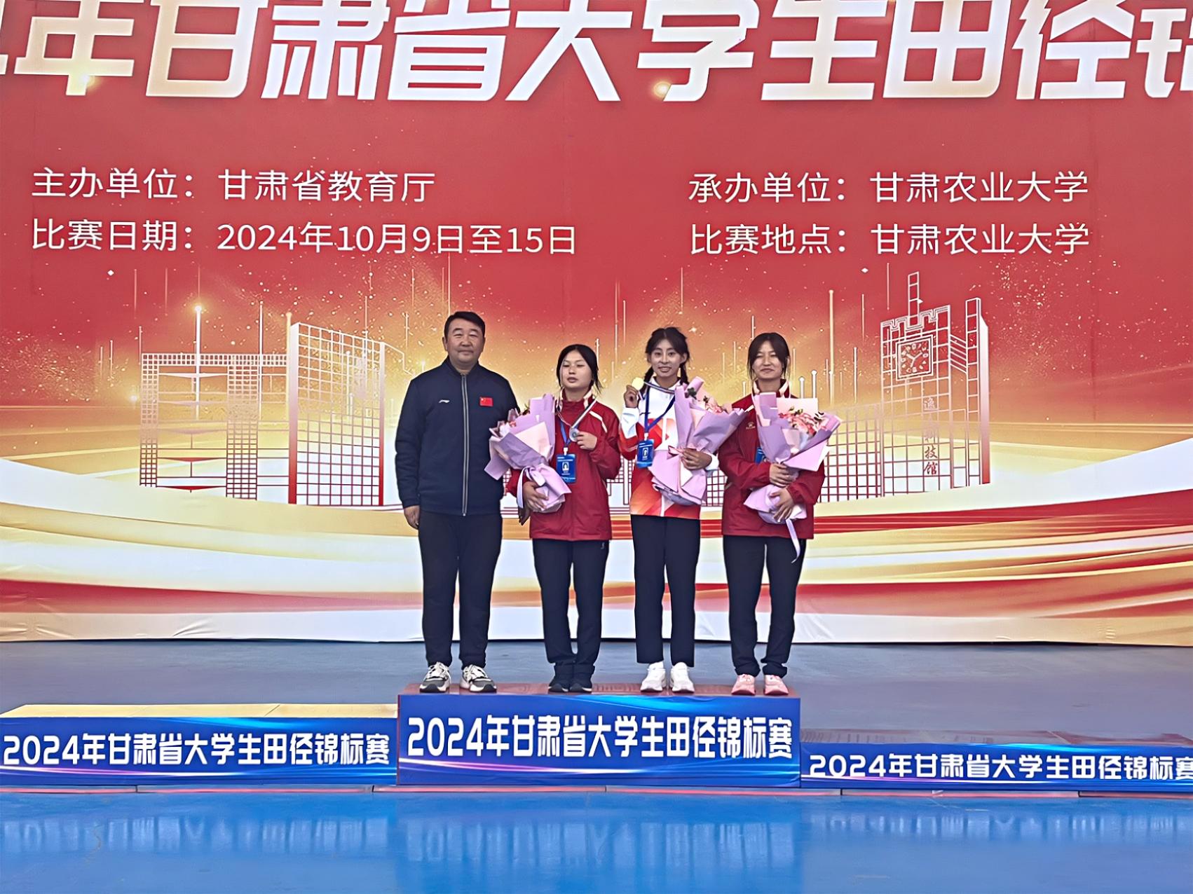 10月9日至15日,由省教育廳主辦的2024年甘肅省大學生田徑錦標賽在甘肅農(nóng)業(yè)大學舉行。我校運動健兒在比賽中獲得3金、1銀的好成績,13個賽項進入決賽取得名次,2位教練員獲得“優(yōu)秀教練員”榮譽稱號,學校榮獲“體育道德風尚獎”,為我校贏得了榮譽。