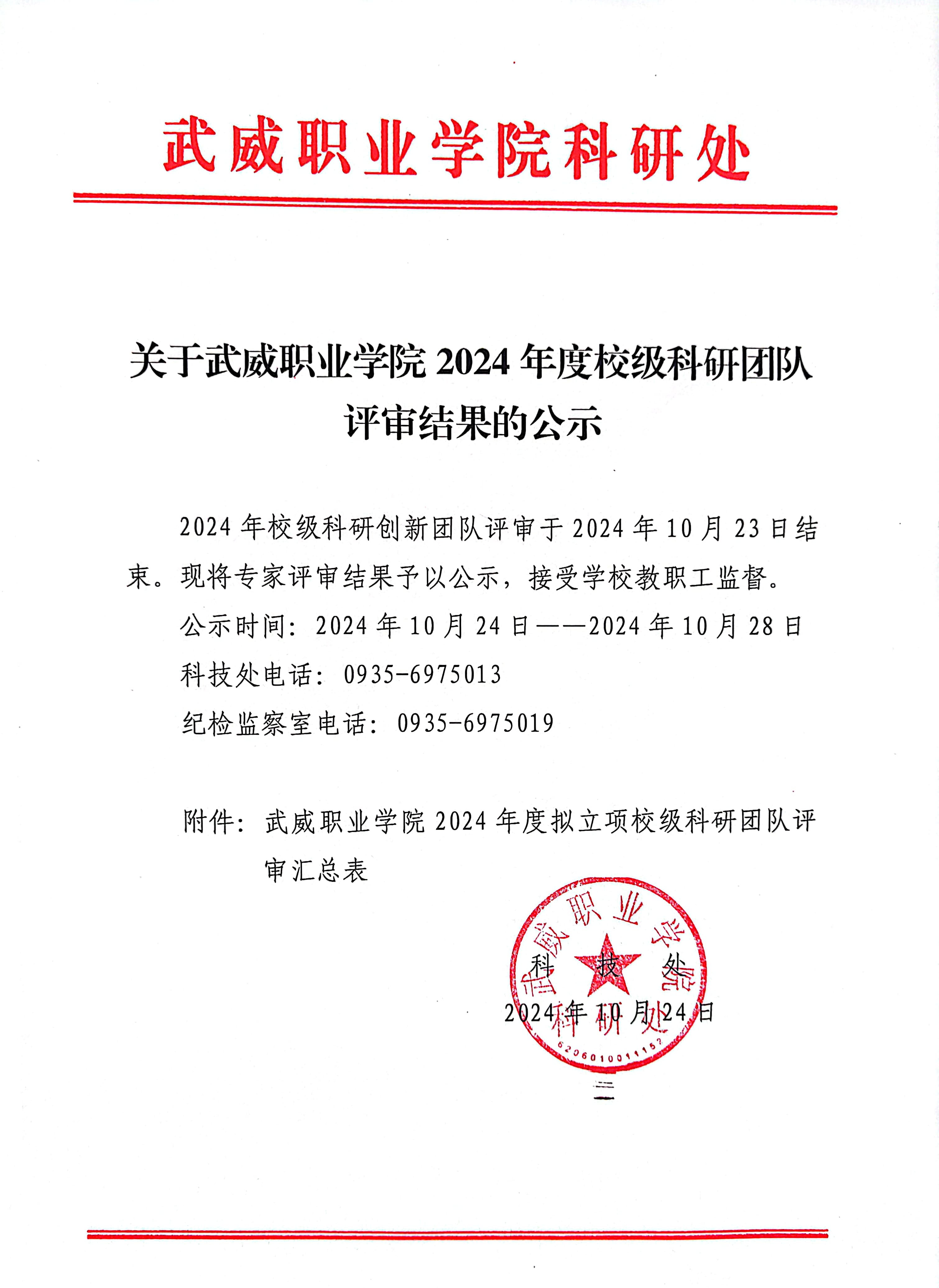 關(guān)于武威職業(yè)學院2024年度校級科研團隊評審結(jié)果的公示