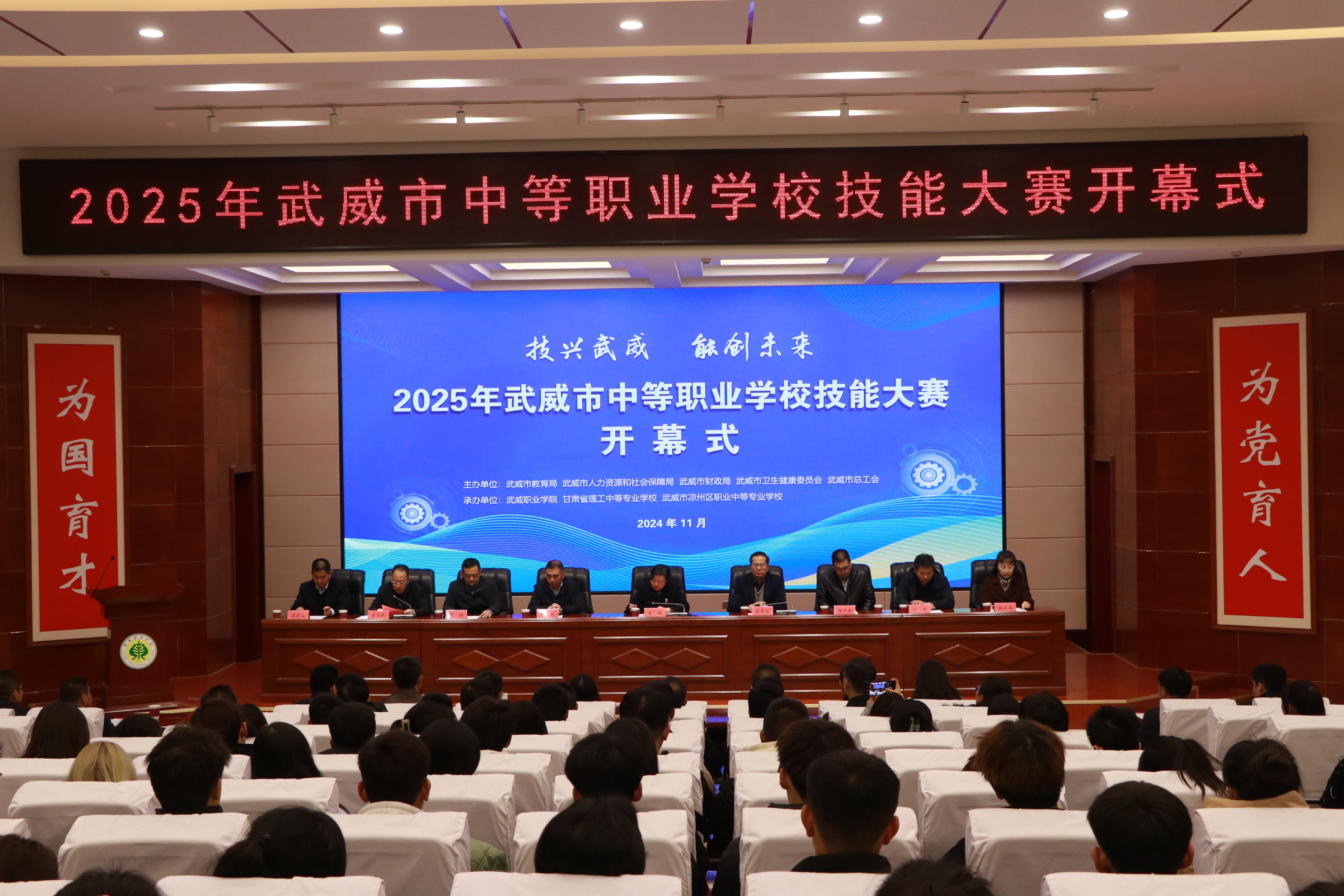 11月18日,由武威市教育局、武威市人社局、武威市財(cái)政局、武威市衛(wèi)生健康委員會(huì)、武威市總工會(huì)主辦,我校和甘肅省理工中等專(zhuān)業(yè)學(xué)校、武威市涼州區(qū)職業(yè)中等專(zhuān)業(yè)學(xué)校承辦的2025年武威市中等職業(yè)學(xué)校技能大賽在學(xué)校菁英廳隆重開(kāi)幕。