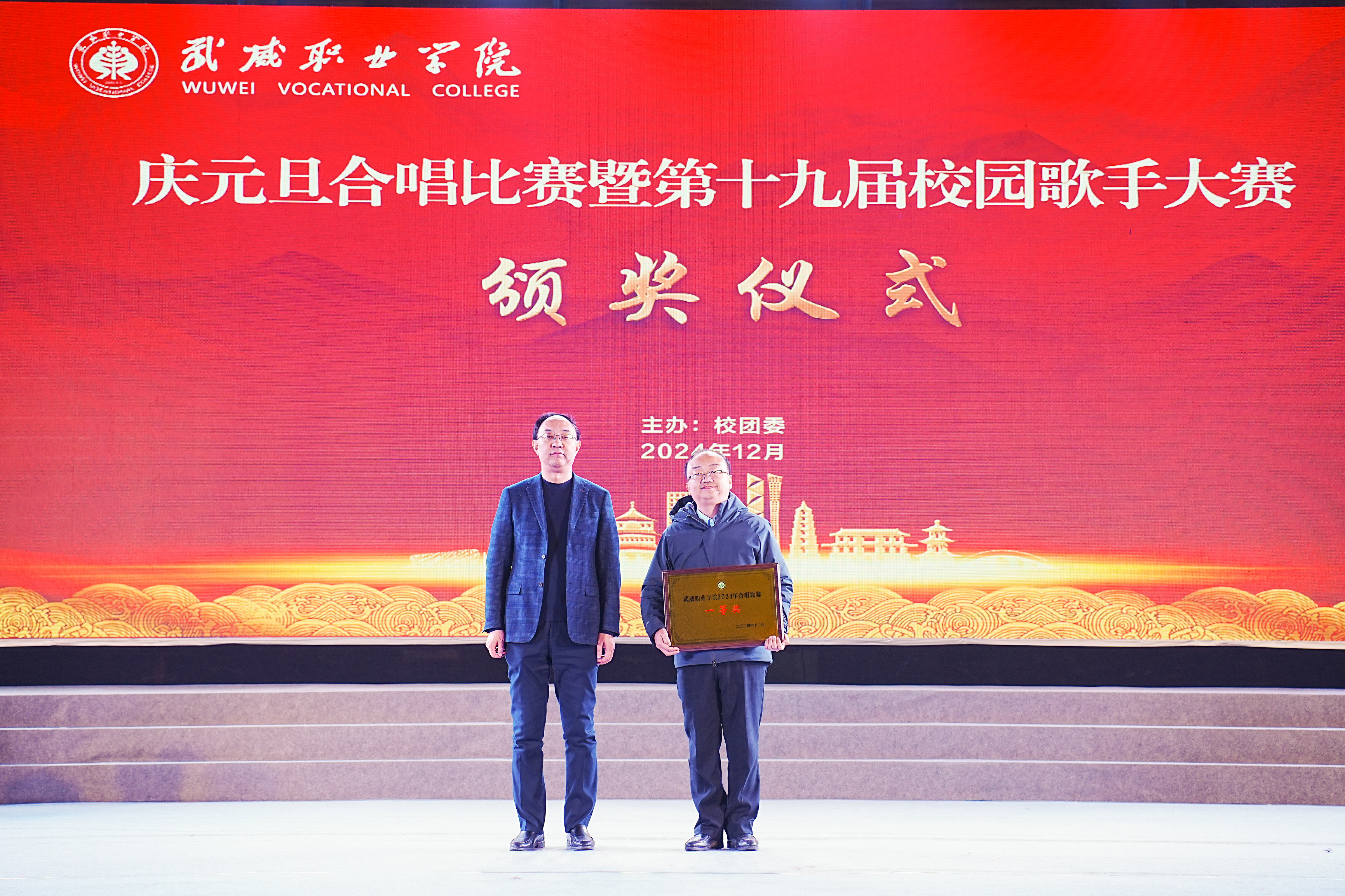 歌聲獻(xiàn)禮時代,青春唱響未來。12月26日晚,學(xué)?!皯c元旦”合唱比賽暨第十九屆校園歌手大賽在體育館成功舉辦。學(xué)校黨委書記王宏出席活動并為獲獎集體和個人頒獎,黨委委員、副校長王守云出席活動,各二級學(xué)院和相關(guān)部門負(fù)責(zé)人與2000余名師生現(xiàn)場觀看了比賽。