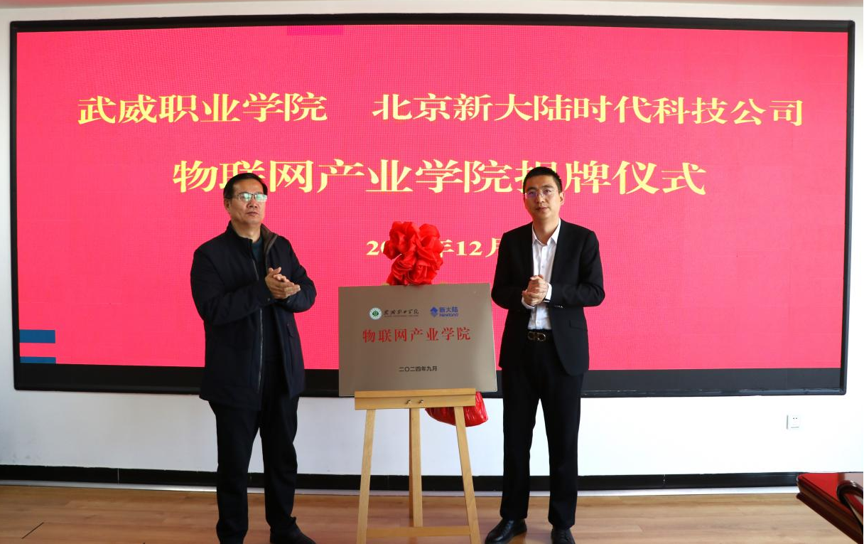 為全面深化產(chǎn)教融合,加強校企合作,進一步提高我校人才培養(yǎng)質(zhì)量。12月3日,學(xué)校在能源科技樓811會議室舉行武威職業(yè)學(xué)院和北京新大陸時代科技公司物聯(lián)網(wǎng)產(chǎn)業(yè)學(xué)院簽約暨揭牌儀式。北京新大陸時代科技公司西北區(qū)總監(jiān)劉寧、技術(shù)總監(jiān)樊斌,相關(guān)業(yè)務(wù)部門負(fù)責(zé)人,學(xué)校校長、黨委副書記張開禮、黨委副書記翟存祥、相關(guān)部門負(fù)責(zé)人及教師代表參加活動。黨委委員、副校長王永緒主持儀式。