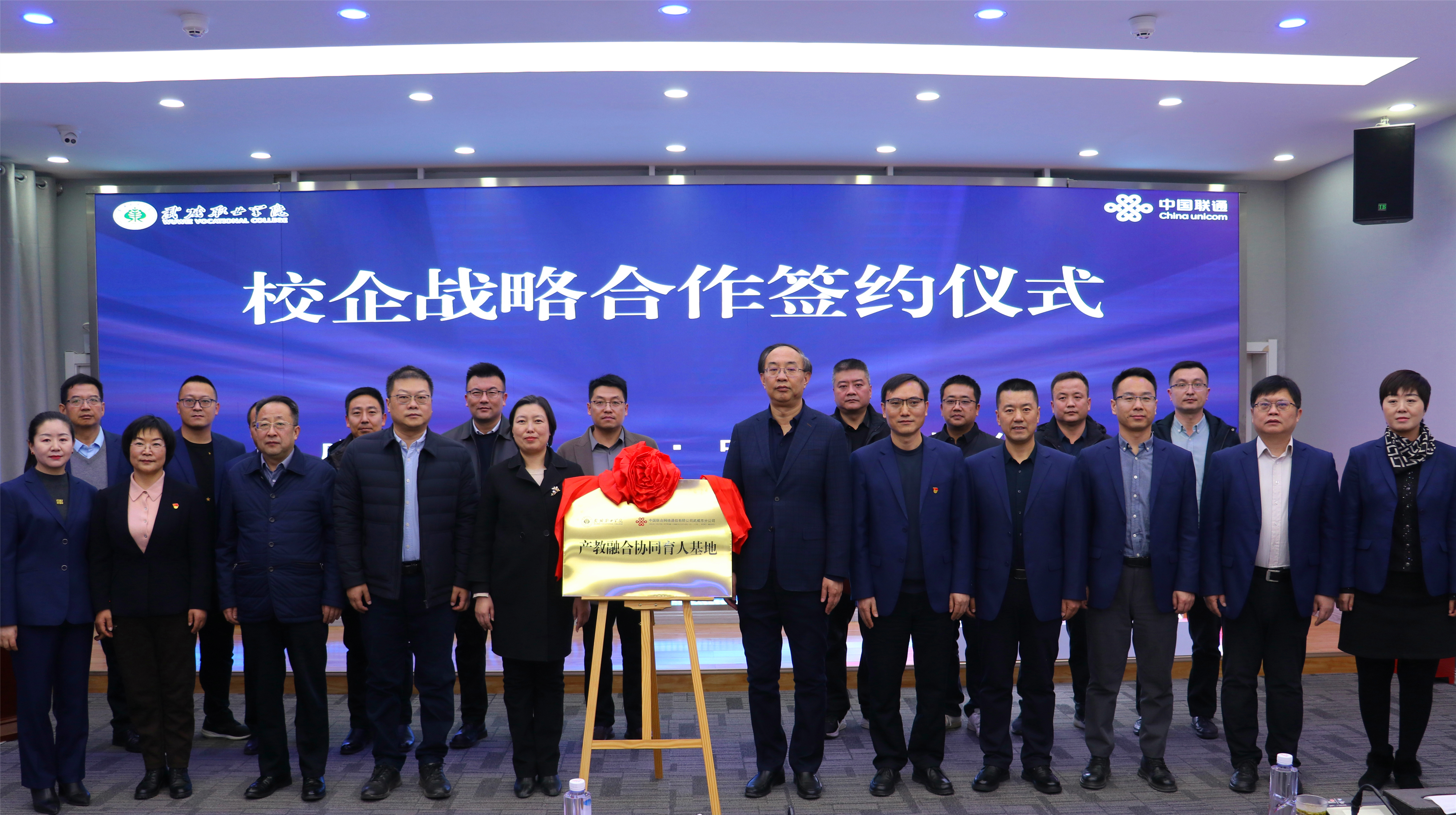 12月19日,學(xué)校與中國聯(lián)通武威市分公司校企戰(zhàn)略合作協(xié)議簽約儀式在聯(lián)通數(shù)字經(jīng)濟(jì)創(chuàng)新展示中心舉行。武威市教育局局長王娟、中國聯(lián)通武威市分公司總經(jīng)理許勇、學(xué)校黨委書記王宏、校長李海軍出席簽約儀式。學(xué)校黨委委員、副校長何毅主持儀式。