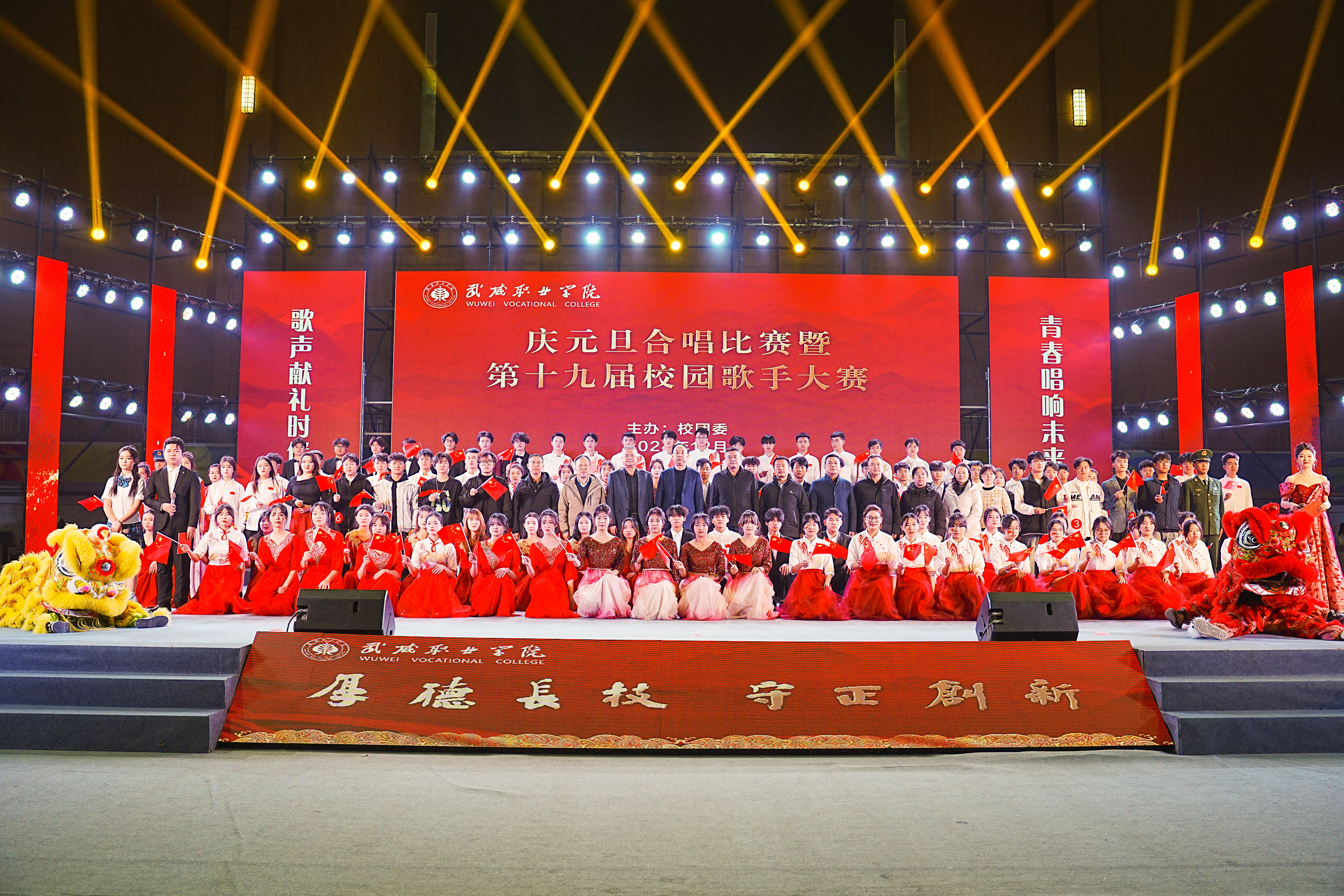 歌聲獻(xiàn)禮時(shí)代,青春唱響未來(lái)。12月26日晚,學(xué)校“慶元旦”合唱比賽暨第十九屆校園歌手大賽在體育館成功舉辦。學(xué)校黨委書記王宏出席活動(dòng)并為獲獎(jiǎng)集體和個(gè)人頒獎(jiǎng),黨委委員、副校長(zhǎng)王守云出席活動(dòng),各二級(jí)學(xué)院和相關(guān)部門負(fù)責(zé)人與2000余名師生現(xiàn)場(chǎng)觀看了比賽。