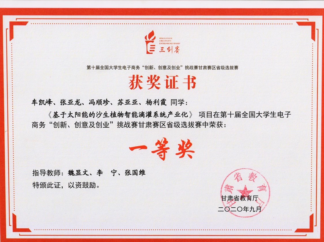 第十屆全國(guó)大學(xué)生電子商務(wù)“創(chuàng)新、創(chuàng)意及創(chuàng)業(yè)”挑戰(zhàn)賽甘肅賽區(qū)省級(jí)選拔賽一等獎(jiǎng)