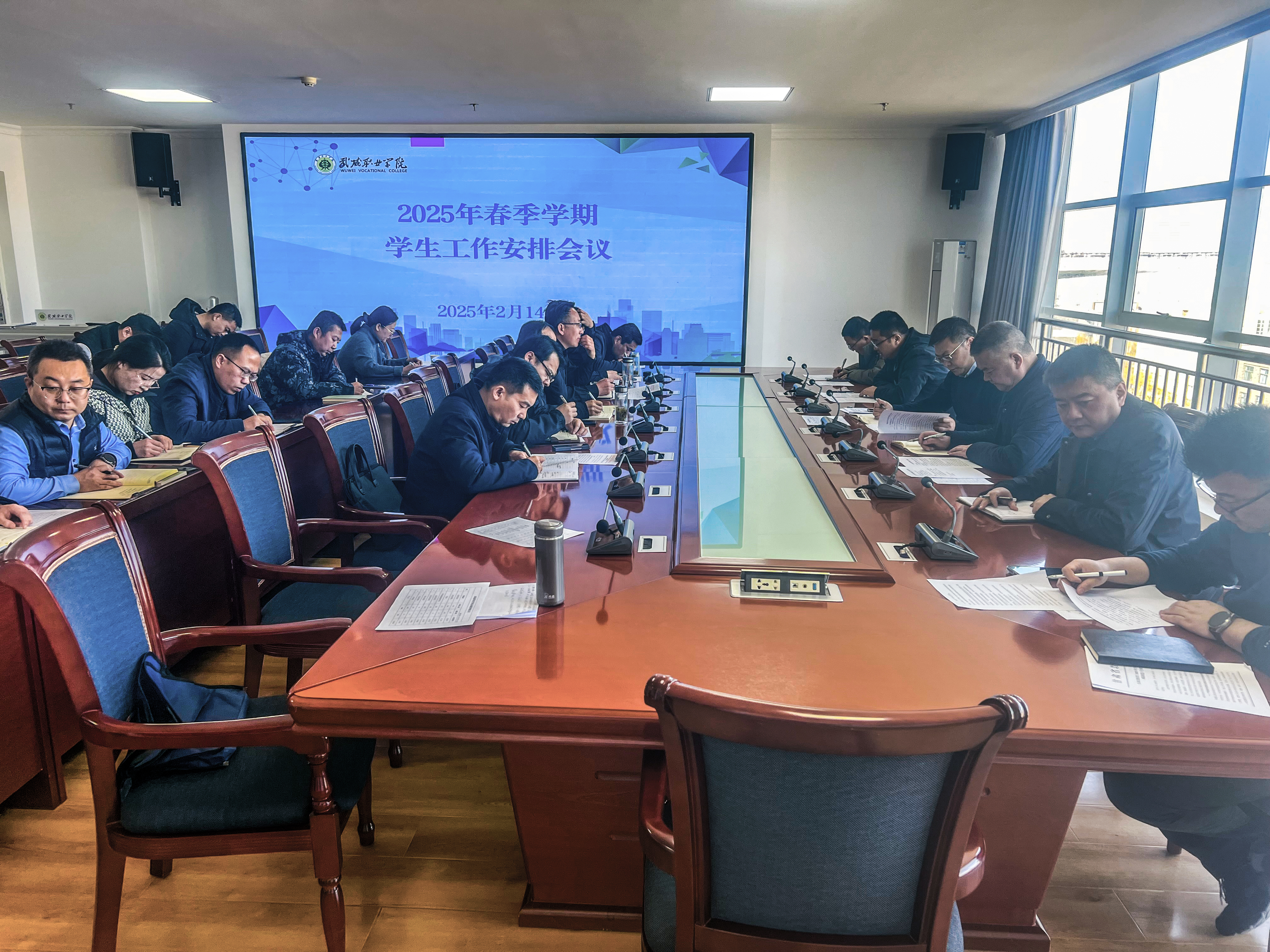 2月14日上午,學(xué)校在能源科技樓811會議室組織召開2025年春季學(xué)期學(xué)生工作會議,校長李海軍出席會議并講話,學(xué)指委單位、二級學(xué)院負(fù)責(zé)人、學(xué)工組長參加會議。黨委委員、副校長王守云主持會議。