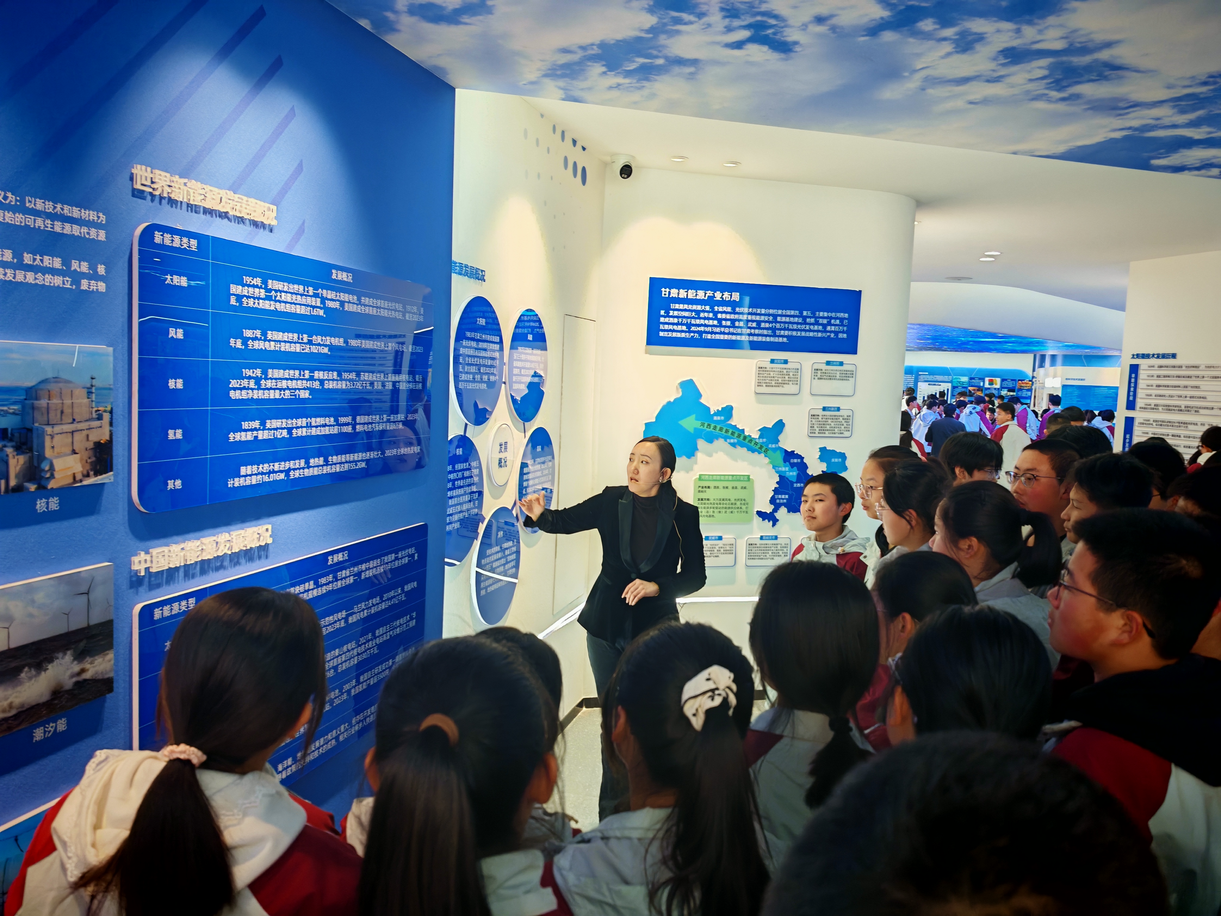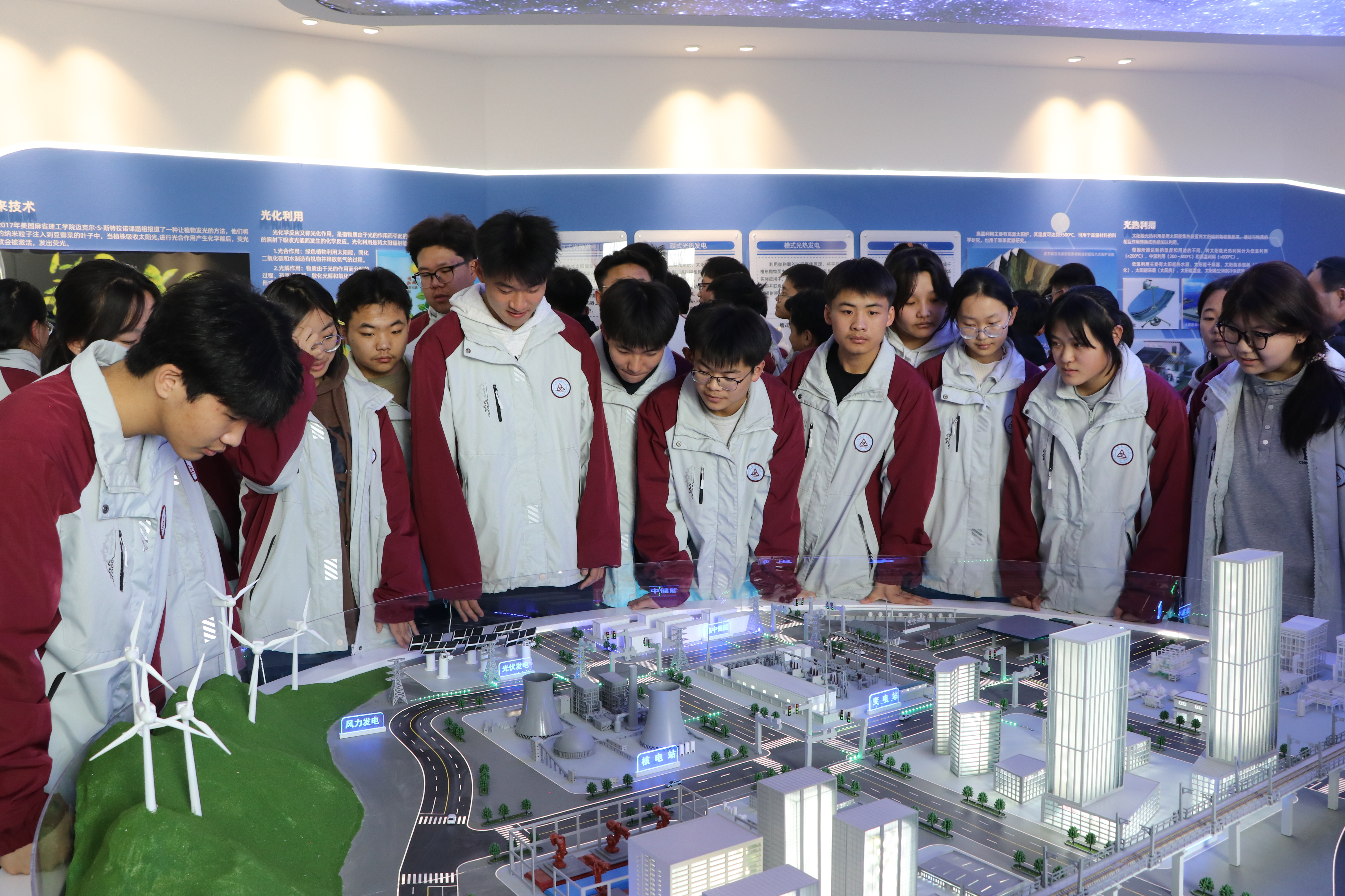 在新能源科技館講解教師講解下,學生們一邊聽一邊體驗觀摩。他們時而激烈討論其科學原理,時而著迷研究模型原理構(gòu)造,久久駐足觀看,流連忘返,可謂大飽眼福。