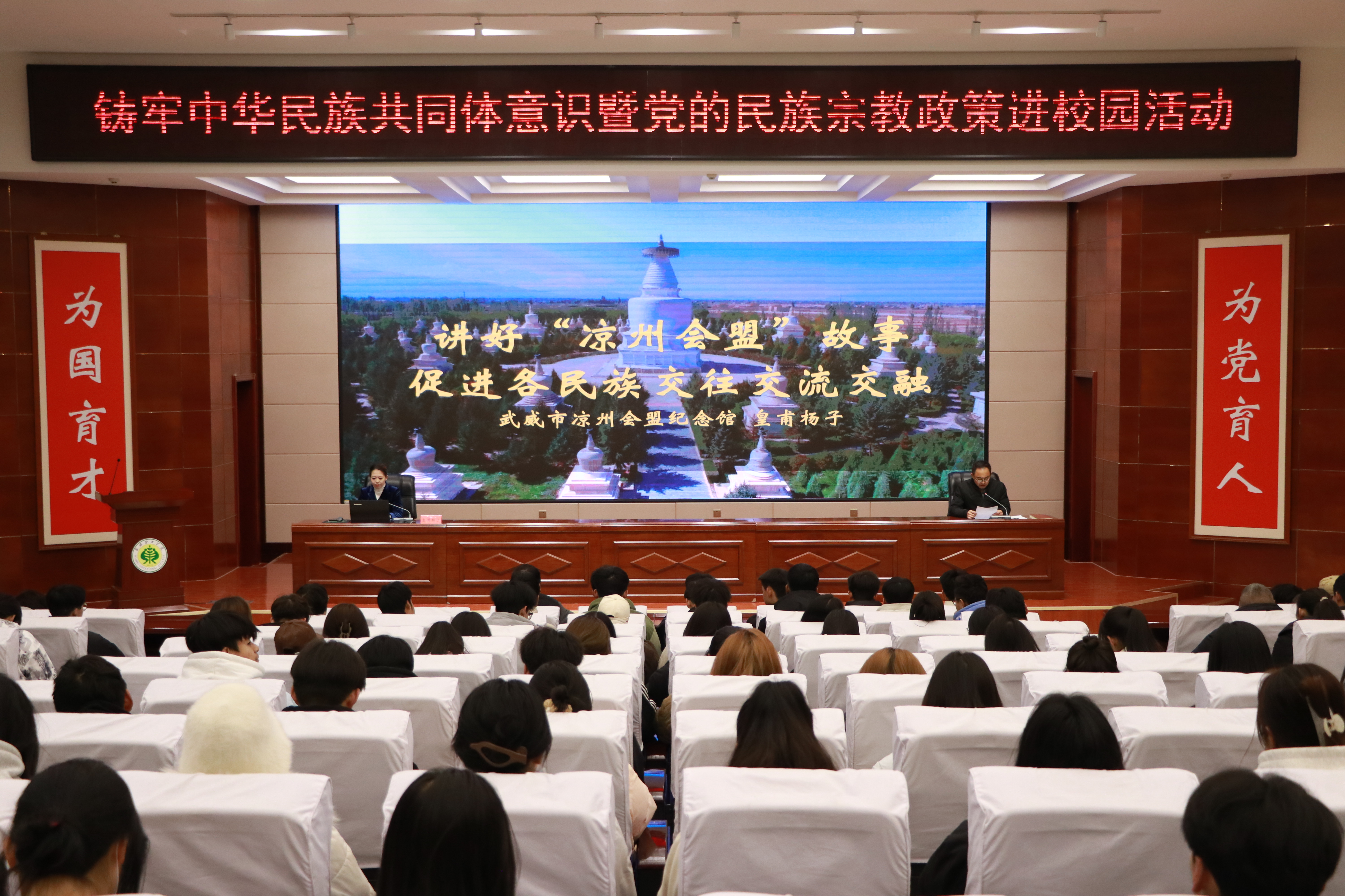 12月19日,學(xué)校聯(lián)合武威市涼州會(huì)盟紀(jì)念館,成功舉辦了鑄牢中華民族共同體意識(shí)暨民族宗教政策進(jìn)校園系列活動(dòng)?;顒?dòng)共吸引300余名師生參觀聽(tīng)講。