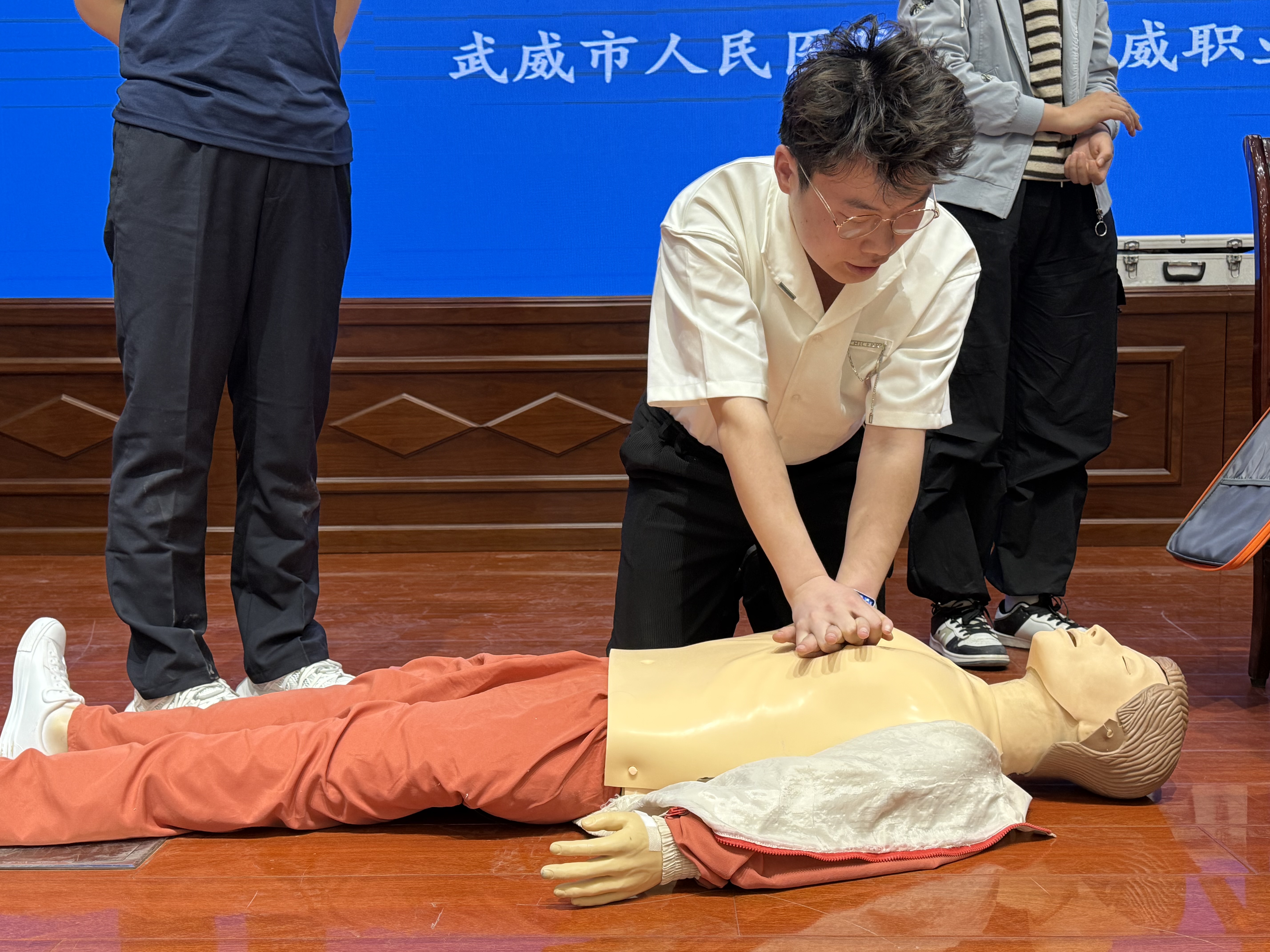 為普及急救知識(shí),提升學(xué)生應(yīng)急救護(hù)能力,4月17日下午,校團(tuán)委聯(lián)合武威市人民醫(yī)院在學(xué)校菁英廳舉辦“關(guān)愛生命 救在身邊”專題培訓(xùn),200余名學(xué)生參與學(xué)習(xí)?;顒?dòng)通過“理論+實(shí)操”形式,系統(tǒng)教授學(xué)生心肺復(fù)蘇、氣道異物急救等技能,助力平安校園建設(shè)。