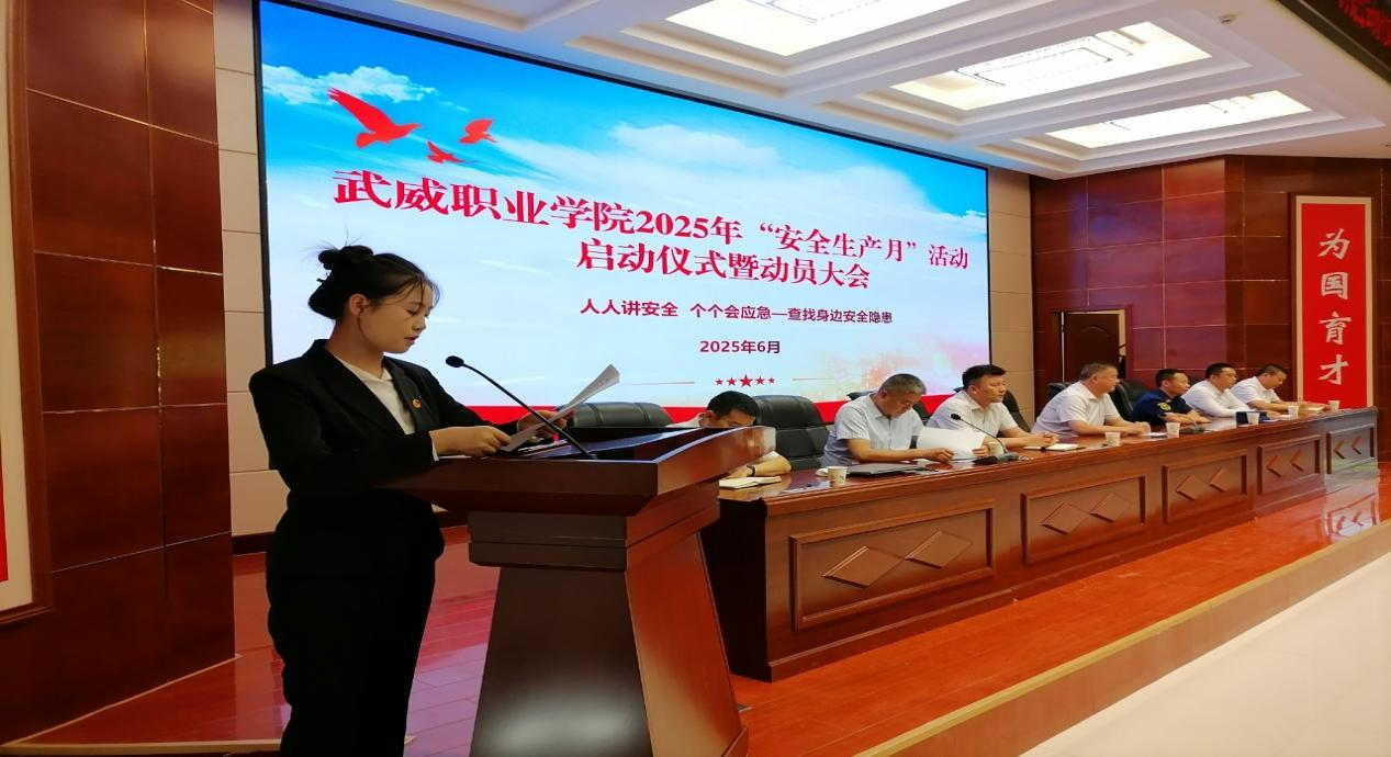 6月16日下午,“安全生產(chǎn)月”啟動儀式暨動員大會在學(xué)校菁英廳舉行。學(xué)校黨委委員、副校長王守云作動員講話,強調(diào)校園安全是辦學(xué)治校的生命線,要求全校師生以高度的責(zé)任感積極參與各項活動,將安全理念內(nèi)化于心、外化于行。安全保衛(wèi)處處長李欣對活動作了詳細安排。學(xué)生代表王盼發(fā)出倡議,號召同學(xué)們自覺學(xué)習(xí)安全知識、遵守安全規(guī)范、擔(dān)當(dāng)安全責(zé)任。最后,師生代表在印有活動主題的承諾墻上鄭重簽名,表達踐行安全的堅定決心。