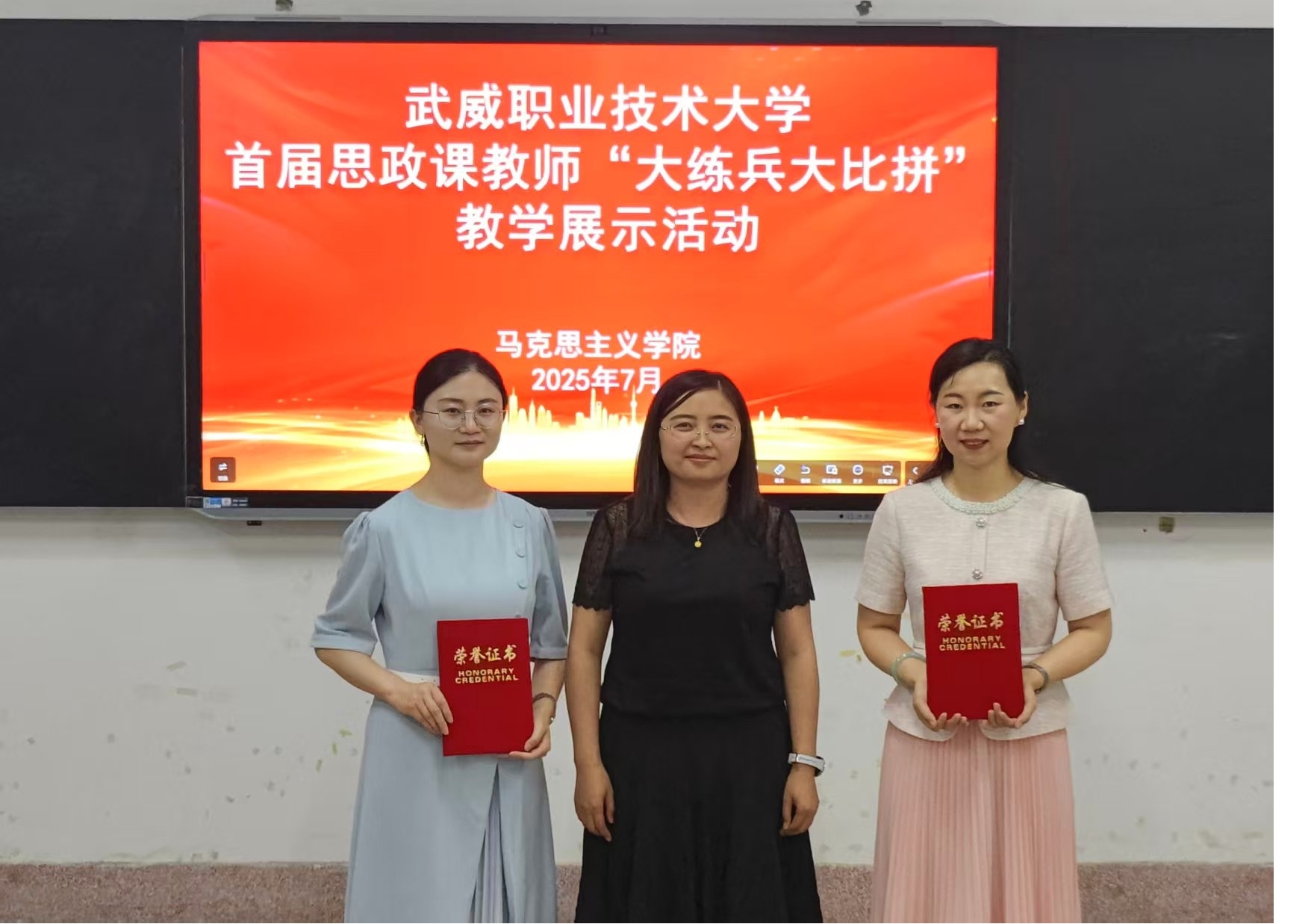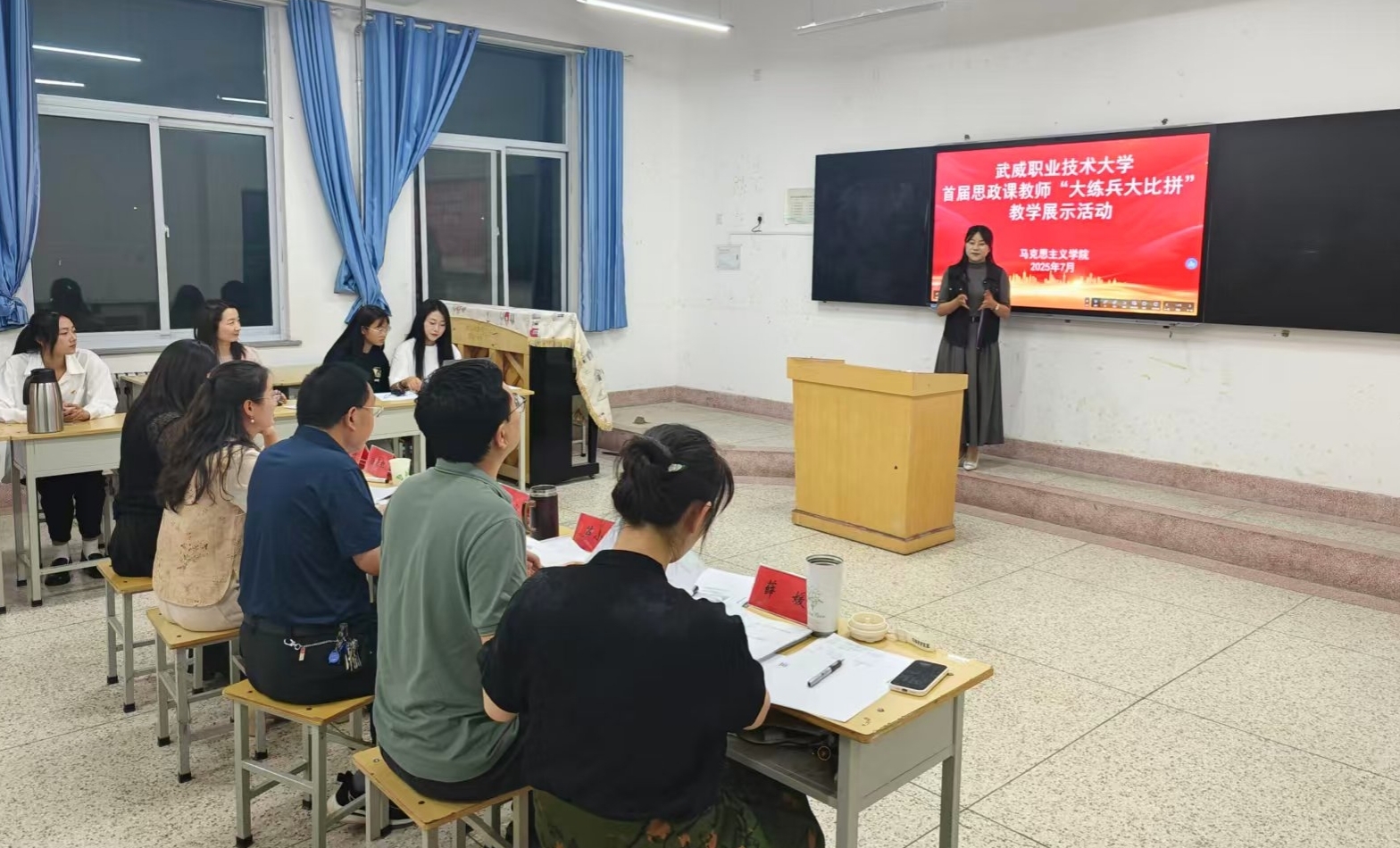 7月3日,武威職業(yè)技術(shù)大學(xué)首屆思政課教師“大練兵大比拼”教學(xué)展示活動在勵勤樓206教室成功舉辦。活動旨在推動新時代思想政治理論課高質(zhì)量發(fā)展,提升思政課教師教學(xué)水平,打造高素質(zhì)思政課教師隊伍。