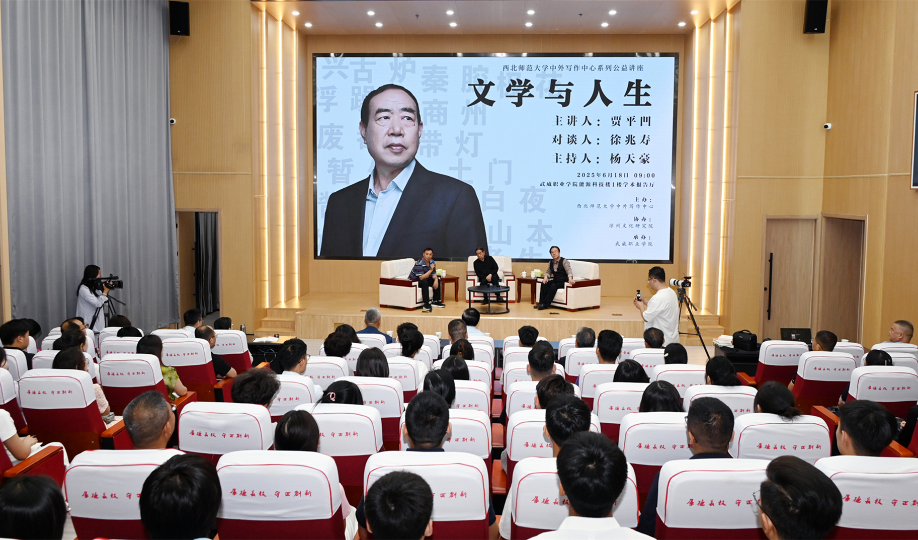 近日,西北師范大學中外寫作中心武威基地“文學與人生”公益講座在武威職業(yè)技術大學舉辦。著名作家、西北師范大學特聘教授賈平凹擔任主講嘉賓,寫作中心常務副主任徐兆壽教授擔任對談嘉賓,與師生共赴一場思想文化盛宴。講座由西北師范大學中外寫作中心副主任楊天豪主持。